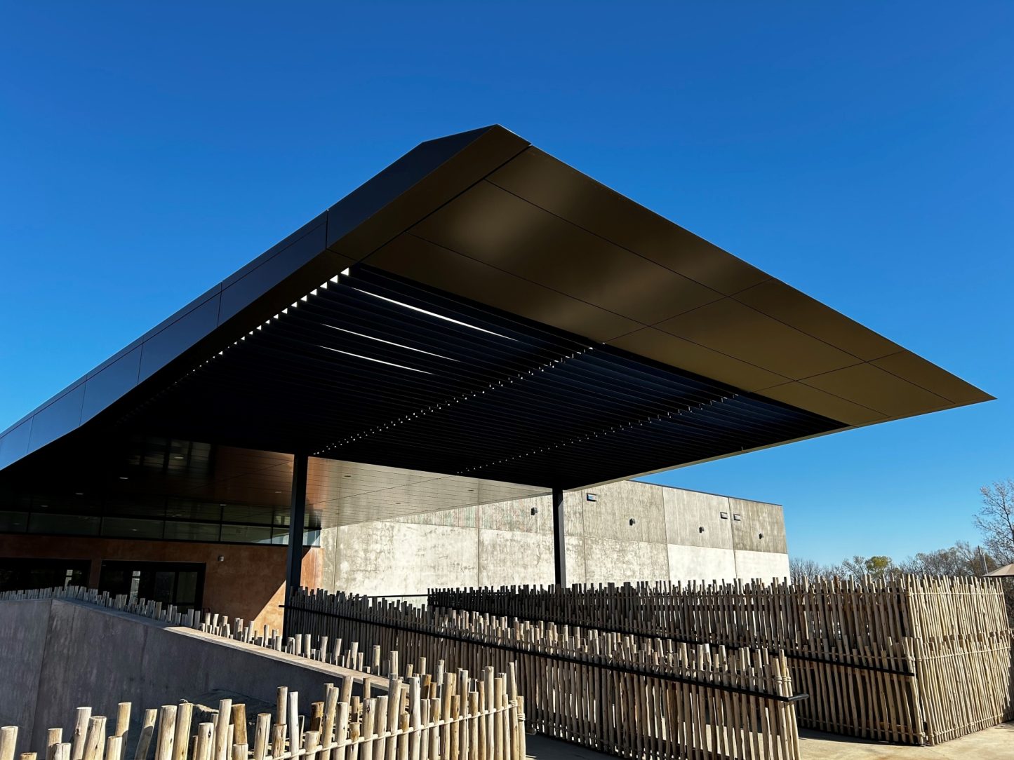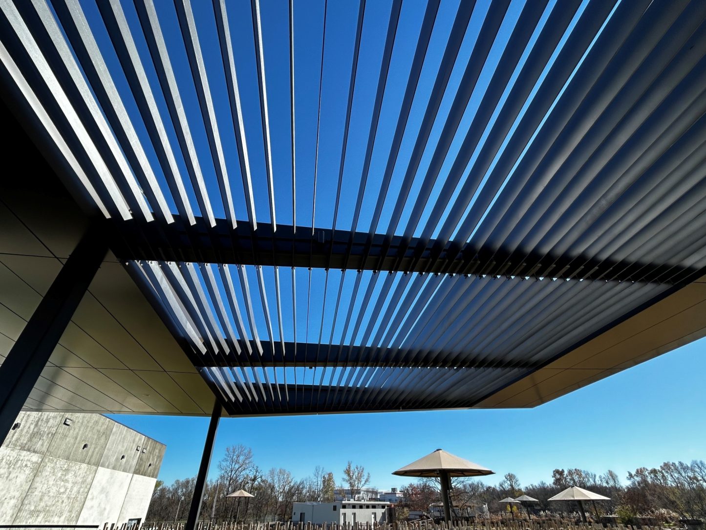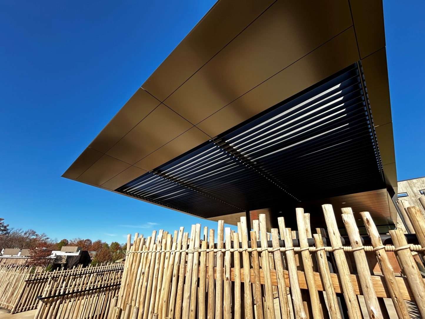 Notably, the canopy for the public entryway to the enclosure was specified to be hot-dip galvanized. Due to its exposure to the elements, the volatile climate of central Oklahoma, and the harshness of being part of a wild animal enclosure; the architects and engineers on this project elected to protect the canopy of the exhibit, along with some of the more exposed structural components with zinc.