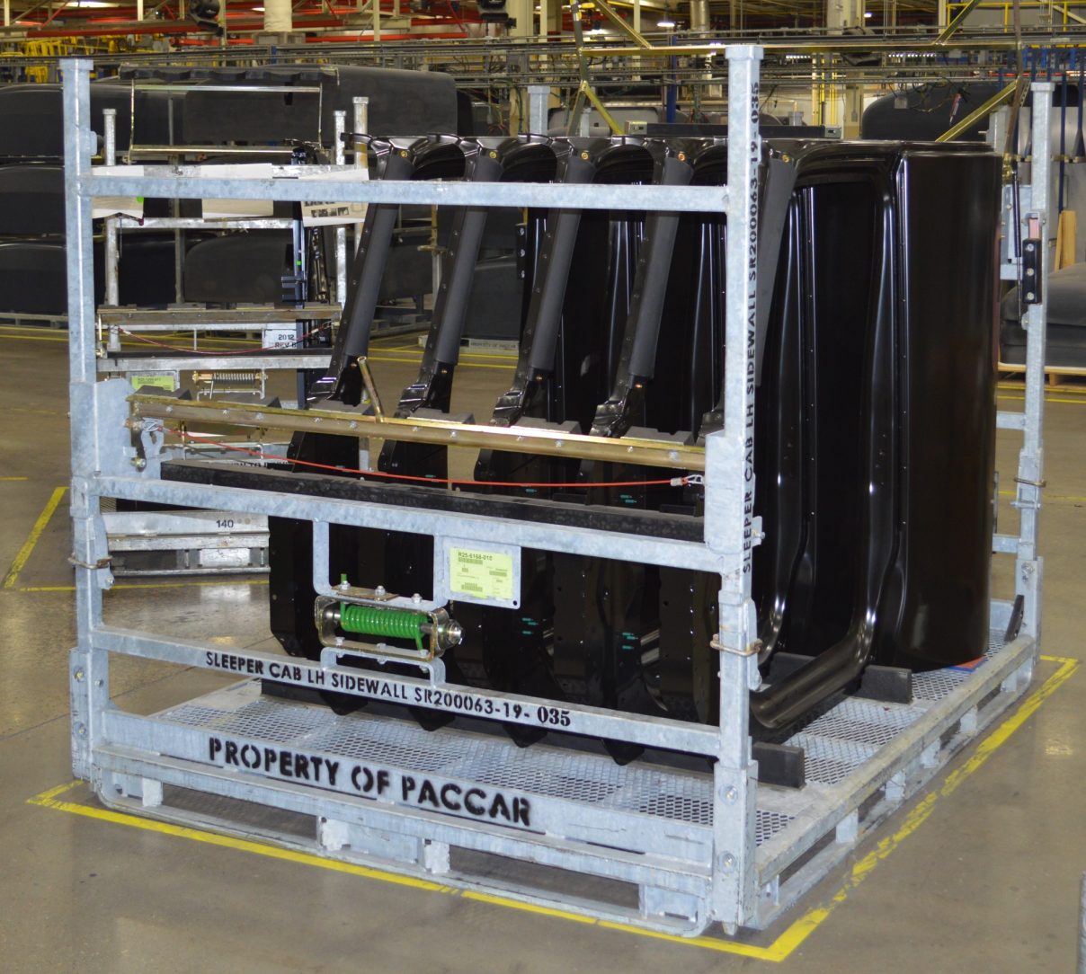While PACCAR is headquartered in Bellevue, Washington, they have multiple assembly plants throughout North America. The shipping racks pictured are examples of racks designed by PACCAR engineers to house, handle, and deliver parts to the assembly plants in Denton-Texas, Chillicothe-Ohio, Renton-Washington, Ste. Therese-Quebec, Mexicali-Baja California, and Columbus-Mississippi.