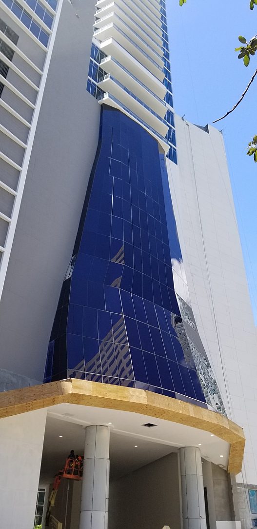 Due to the proximity to the Atlantic Ocean and shear height of the tower, there were unique challenges the builder had to consider throughout the design process. Previous positive experiences quickly led the team to hot dip galvanizing as a superior solution for corrosion protection. Not only would the galvanizing offer protection from the corrosive properties of salt water, it would also essentially eliminate the need for routine maintenance, which would be difficult on a building of this height. Ultimately, 35 tons of steel tubes, I-beams and plates were hot dip galvanized to support the stunning glass canopy as well as 800 tons of galvanized reinforcing bar throughout the entire structure.