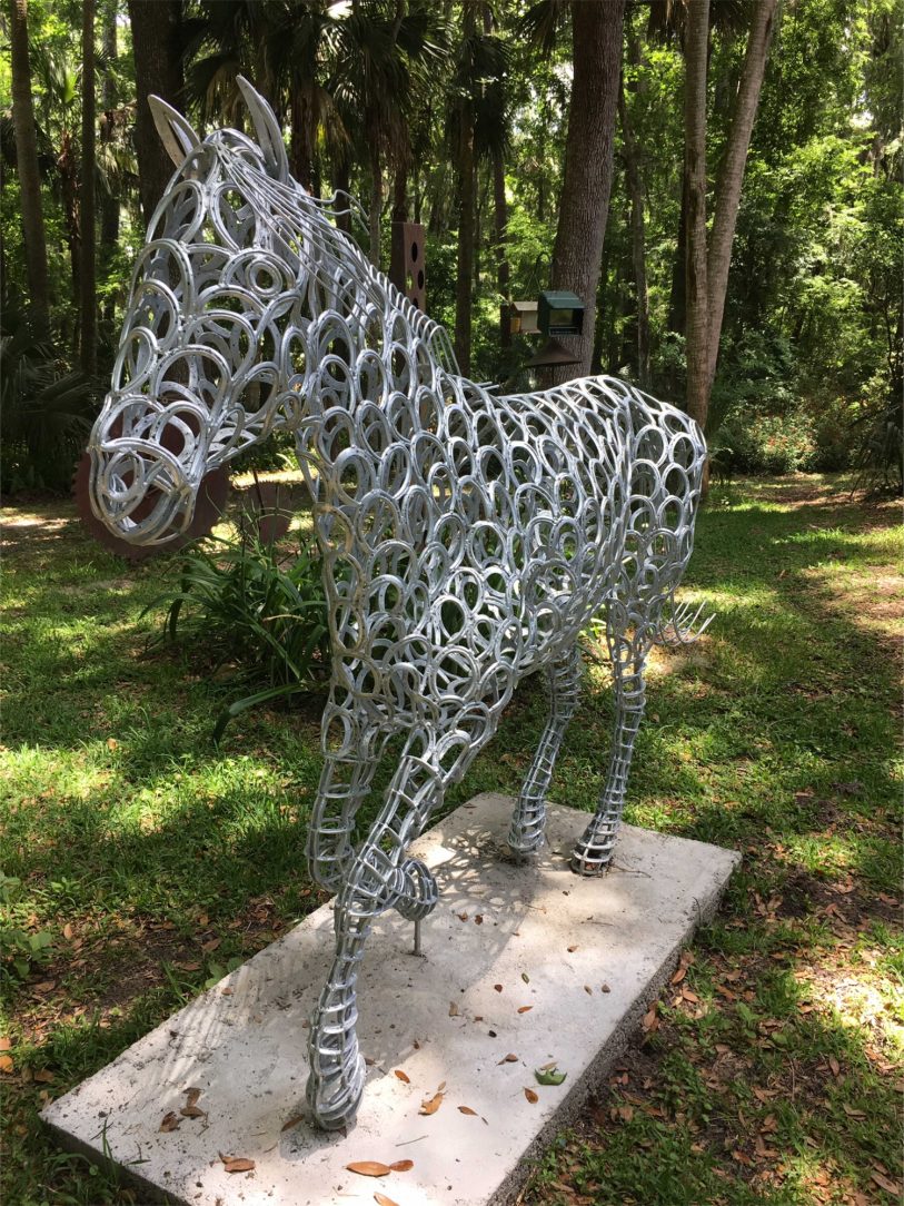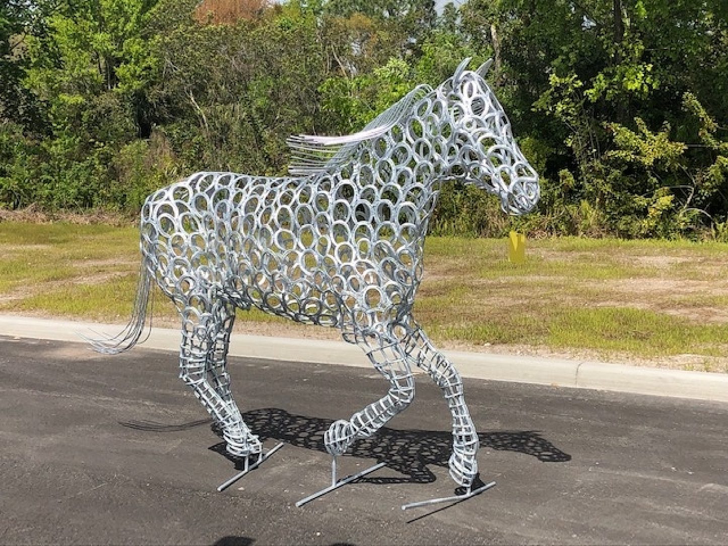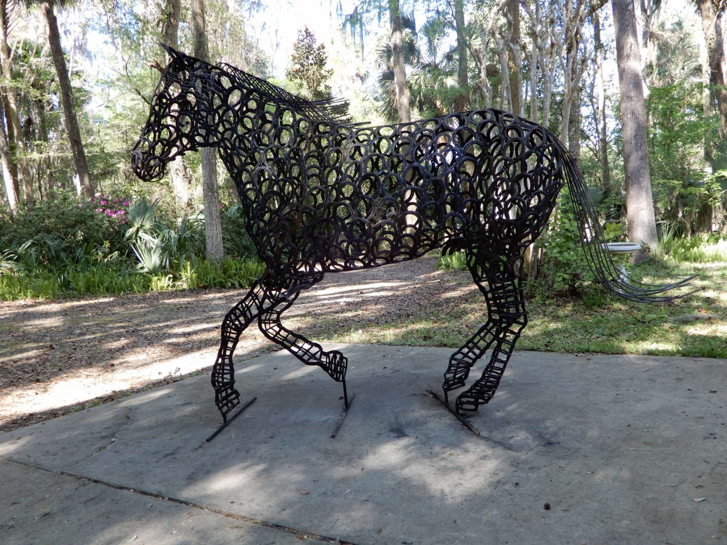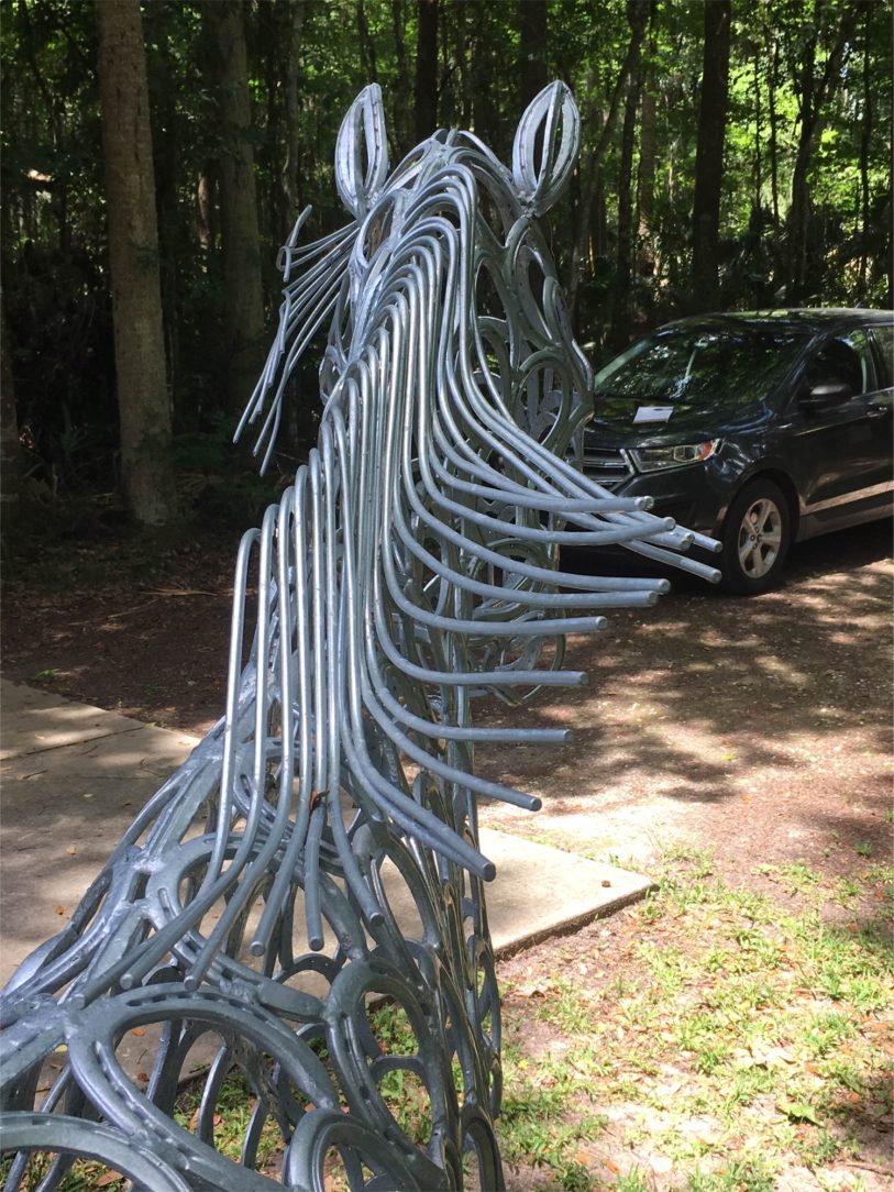 For many horse enthusiasts, Ocala, Florida is considered the horse capital of the world. Roughly 30 miles North of Ocala lies the town of Micanopy, FL, population 600. Micanopy is no stranger when it comes to horses either. Horse farms, boarding, riding lessons, and the Horse Protection Association of Florida can be found in and around Micanopy, FL. Local resident and horse enthusiast, Norman Elder has made a career in the fabrication industry, and to this day considers fabrication to be one of his favorite hobbies. Though he never truly considered himself an artist, many would disagree after feasting their eyes on his most recent masterpiece; a life size horse sculpture.
