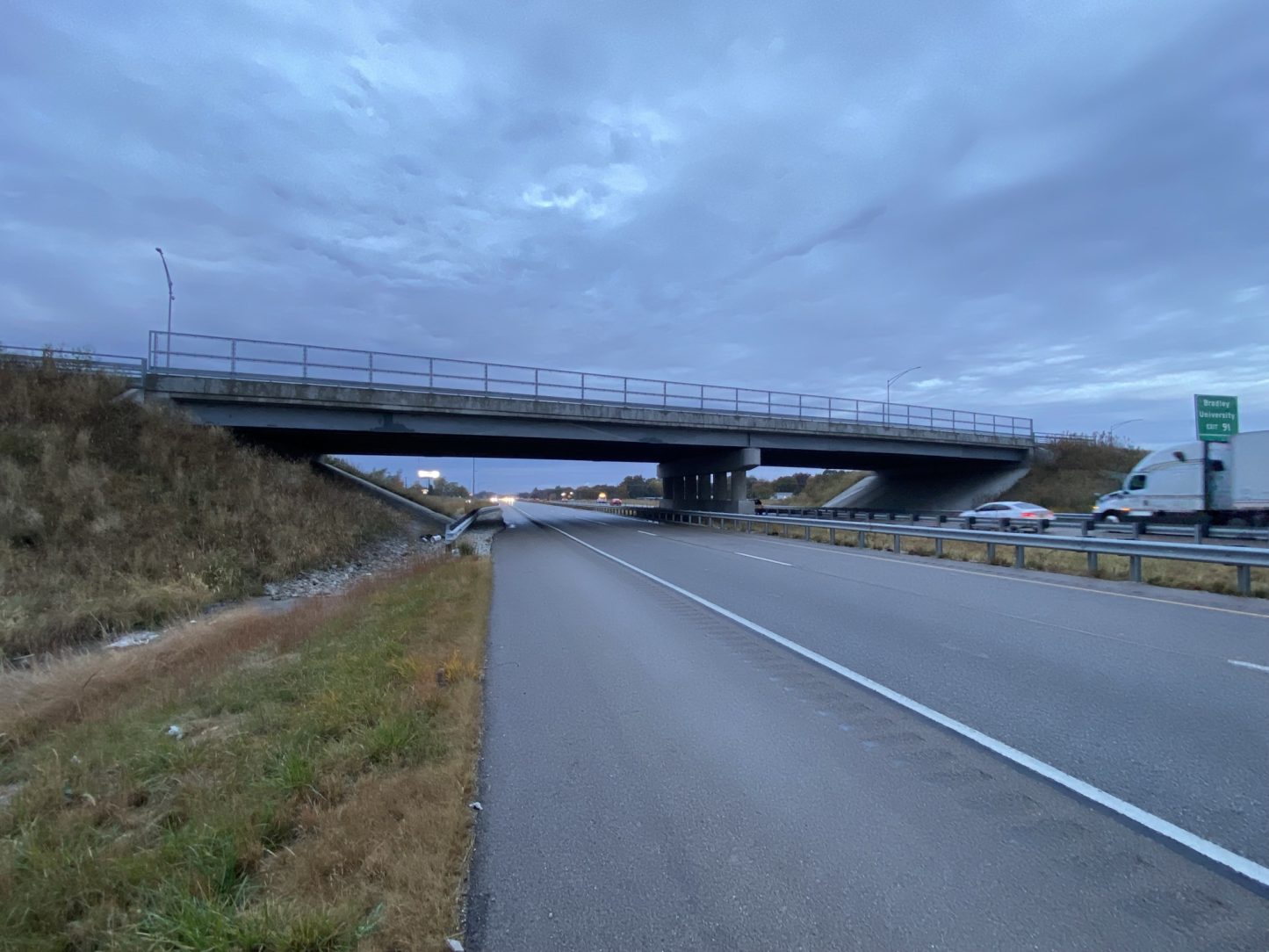 The original structure was built in 1959 and widened with a new deck in 1982. It consists of a four-span structure with continuous wide-flange beams with pile bent pier abutments and reinforced concrete columns. The decision to replace the bridge comes from IDOT, due to the low clearance, the cause of many accidents on I-74.