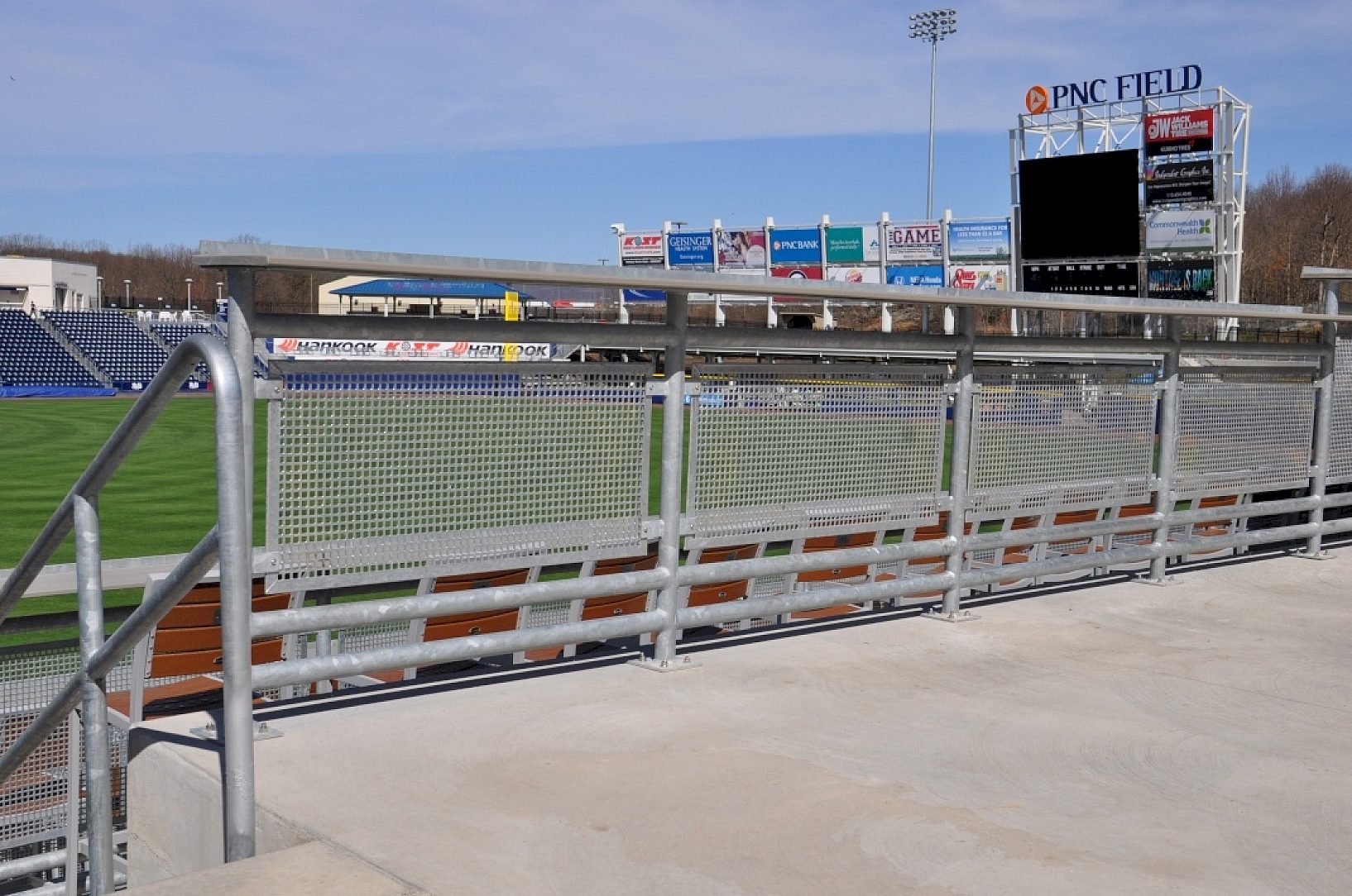 PNC Field (Lackawanna County Stadium Authority) wanted the new handrails to have long lasting coating. Since utilizing a paint system would cause chipping and scratcihing over time from the wear and tear of the public use, the operator of PNC Field (Mandalay Baseball Properties) wanted a product with the least amount of maintenance for years to come. Galvanized rails are a quarter of the price of stainless steel rails in material alone, so the decision was made to install hot-dip galvanized handrails at the park.