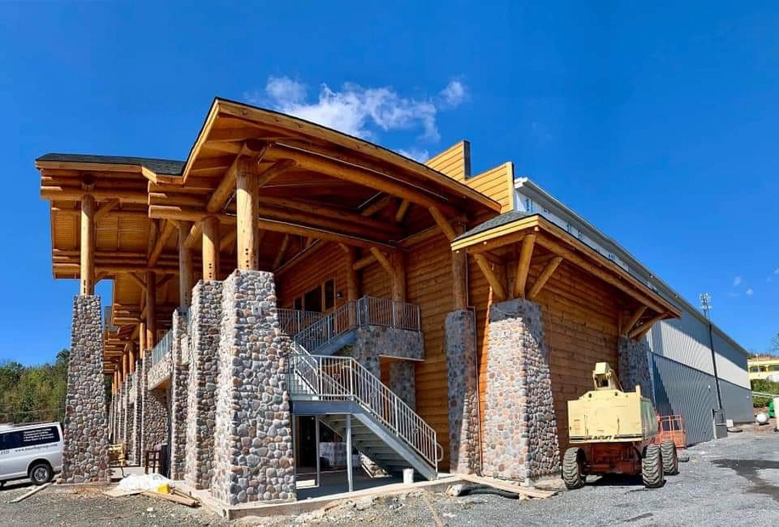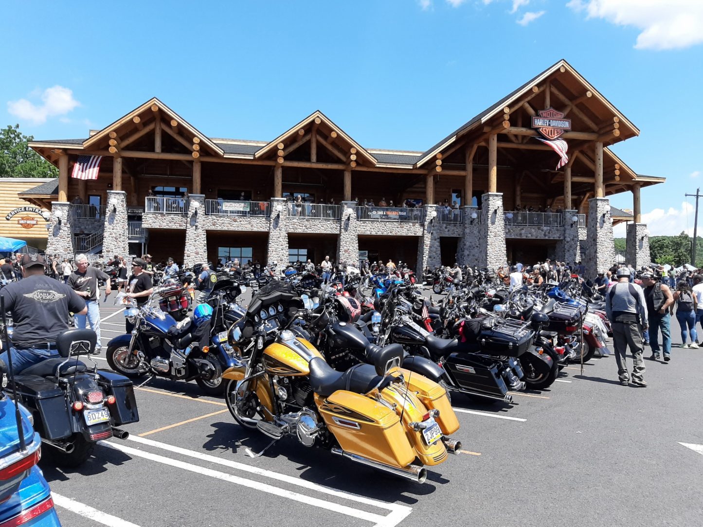 Pocono Mountain Harley Davidson moved to a brand new 54,700 square feet retail store in Tannersville, Pennsylvania own by Jim and Linda Schlier. With a log and stone façade using galvanized railings and diamond plate benches was used in the design for its visual appearance to blend in with the façade and Pocono Mountains scenery making it an ideal setting for the use of galvanized steel.
