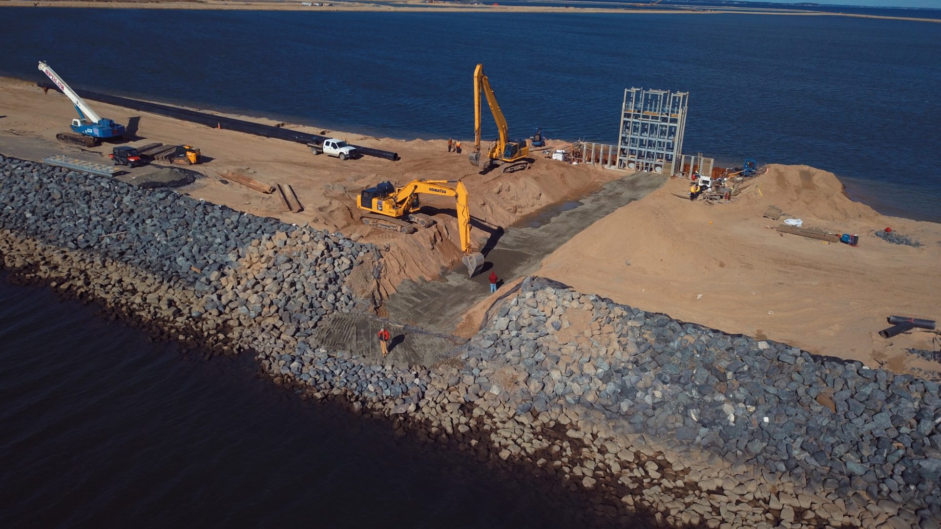 The spillway control structure is designed to regulate water levels as the tidal wetland is established. As dredge material is placed in the cell, water will drain through the spillway, “decanting” the cell to create a tidal wetland inside the cell. The spillway will connect the wetland to the bay to allow full tidal exchange, which is vital to allow marsh plants to become established. The spillway control structure will also stabilize the cell to minimize erosion as the re-establishment process evolves. The Corps of Engineers wanted a structure free from corrosion from the brackish waters of the Chesapeake Bay Estuary. Robust corrosion protection for the control structure is necessary since it may take several years of drainage and grading to achieve the desired topography. After full stabilization has been achieved, the control structure will be replaced with open breaches to the bay.