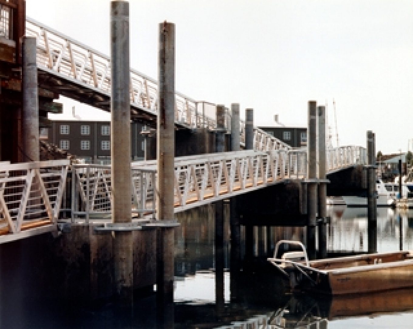Forty tons (36 tonnes) of steel piles - float-stops, fabricated steel connections between concrete piles and timber pile caps, and guard rails - were hot-dip galvanized to ensure that this transient moorage facility has a long, lifespan in the corrosive marine environment. The design successfully provides a stable walking platform, while accommodating wave induced motions, dynamic pedestrian and wheelchair loading, and a full range of tidal variation.