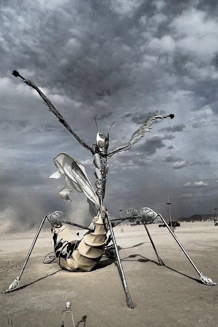 Black Rock, when not in use, is a non-descript area of desert better identified with latitude and longitude coordinates. During the event this area becomes home to more than 60,000 temporary community inhabitants. The event is described as an experiment in community, art, radical self-expression and radical self-reliance. The festival is a haven for artists to express themselves without the trepidation of judgment. This year, Heather Dessel, a local artist from Tempe, AZ made the trek to the Nevada desert to show off her self-expression. Her sculpture Praying Mantis was not only a hit, especially with the youth, but it used hot-dip galvanizing (HDG) in the artistic process.