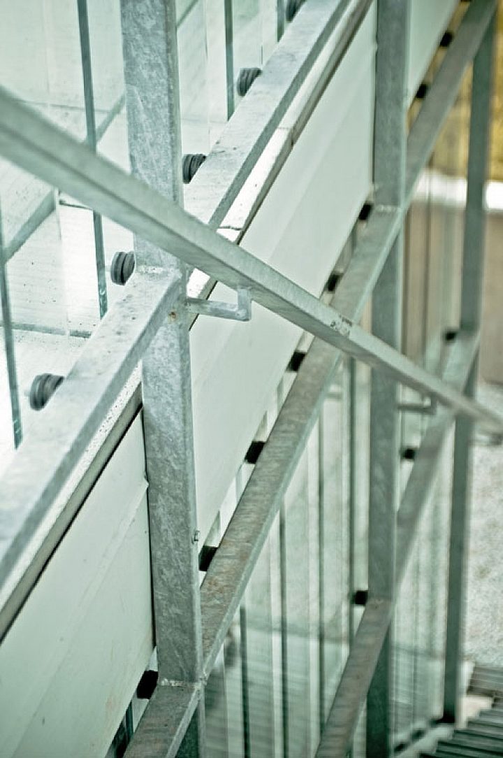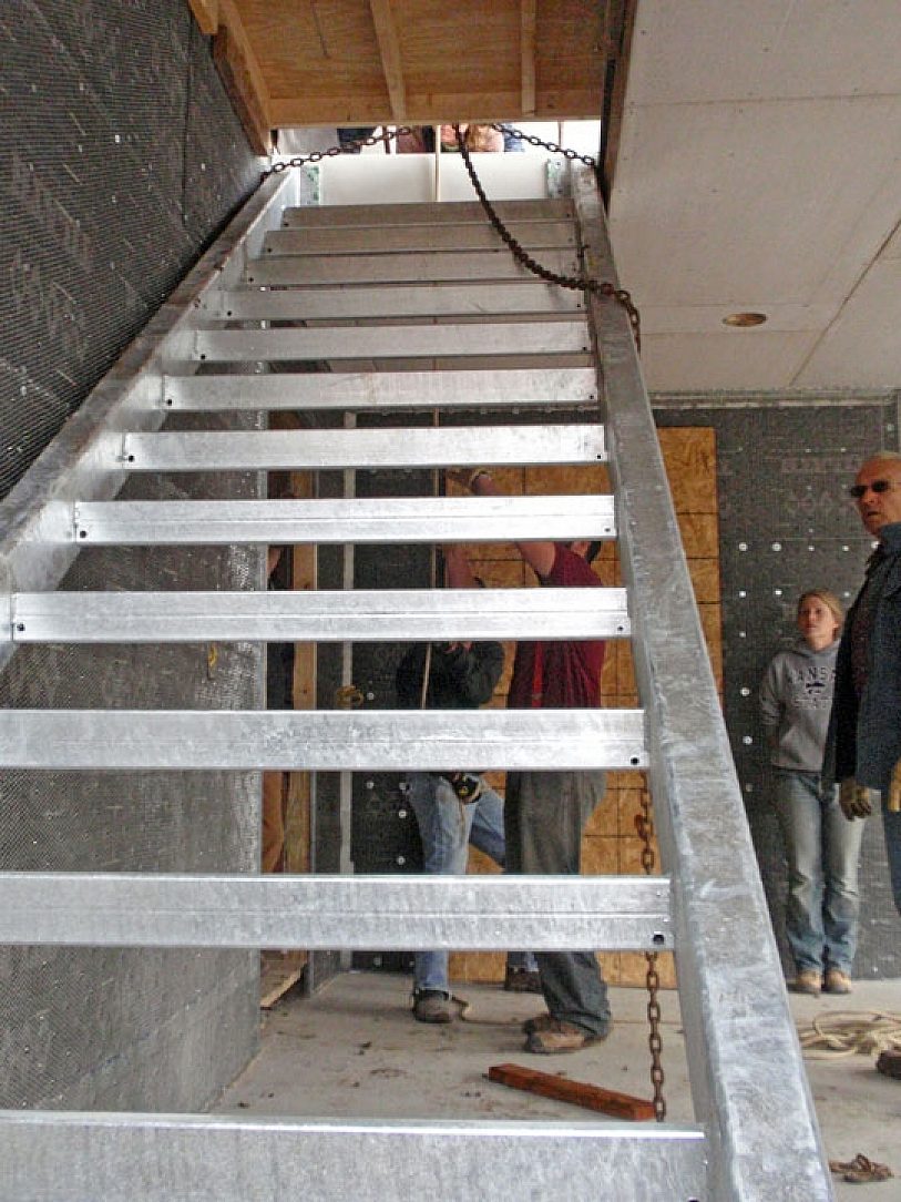 The functional areas that were chosen to be galvanized, including hand rails, stair stringers, and window louvers, required a tough coating to that would require little to no maintenance. The customer preferred hot-dip galvanizing to other coating systems because of the longevity of the coating, the ease to modify pieces during installation, and the fitting look of the natural zinc patina within the building. HDG was also chosen in order to show the surrounding community that it is possible to create a stylish, environmentally friendly, and sustainable structure that is cost effective and will remain visibly pleasing for years to come.