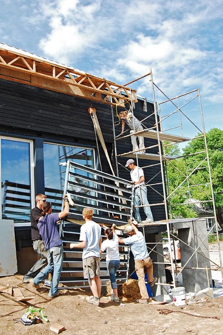 Studio 804 is a design/build program at the University of Kansas School of Architecture and Urban Planning. As a final, single semester comprehensive experience, Studio 804 provides students with critical knowledge that prepares them for their future work as young architects in a rapidly changing and challenging profession. The vehicle used for this exhaustive experience is the design and development of an affordable building during which students explore and develop architectural solutions which promote efficiency, sustainability, and creative use of materials.