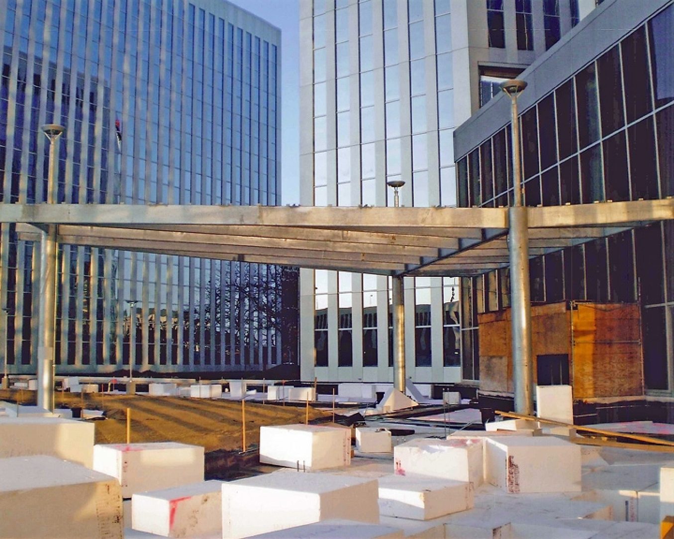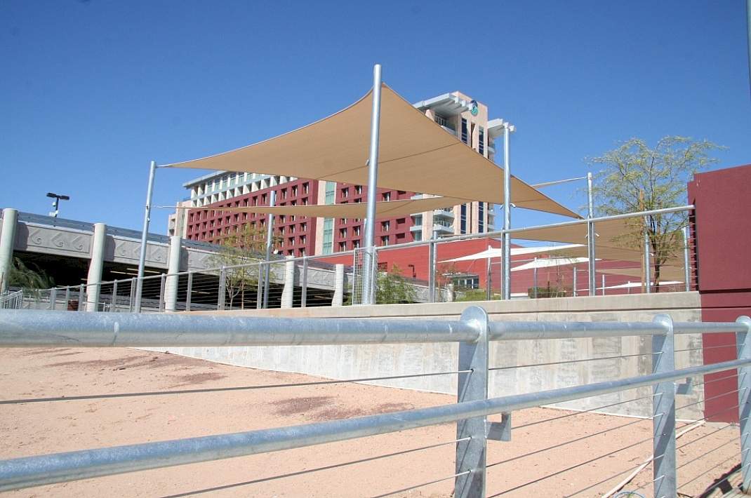 All 45 tons of structural steel and support bracings for the outdoor canopy at the plaza were galvanized, meaning the structure will require little or no maintenance for decades.