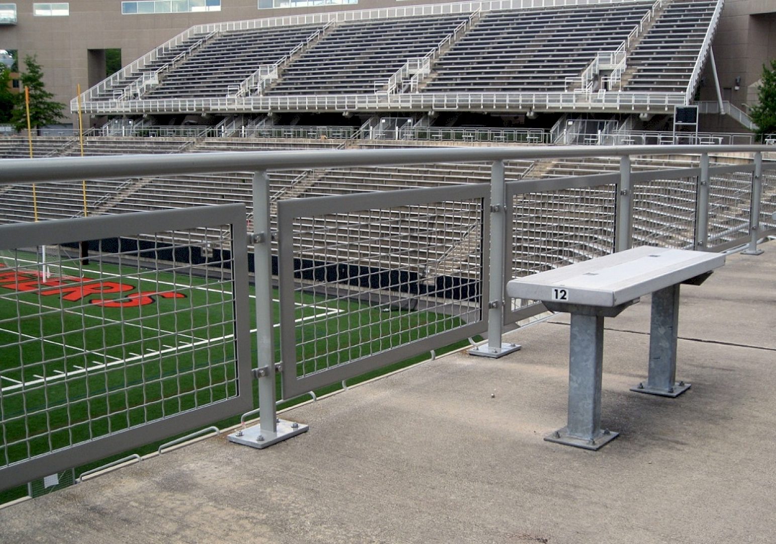 The previous railings were severely rusted after only ten years of use, and were replaced with galvanized railings in order to ensure they will last at least seven times as long. The paint adhesion of the mesh infill panels needed to have a new car finish in appearance. Duplex coating, or paint over galvanized steel, was the perfect choice for the aesthetic look because of the clean, maintenance-free look achieved by the process. Because of the durable corrosion protection provided by hot-dip galvanized steel, this football stadium will stand as an example of the success of HDG for many years to come.