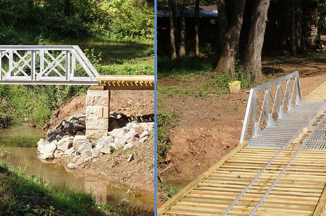 This bridge, made to allow ATVs to cross a small stream, is the first in its area to be made with hot-dip galvanized steel instead traditional wood, which can splinter and rot easily.