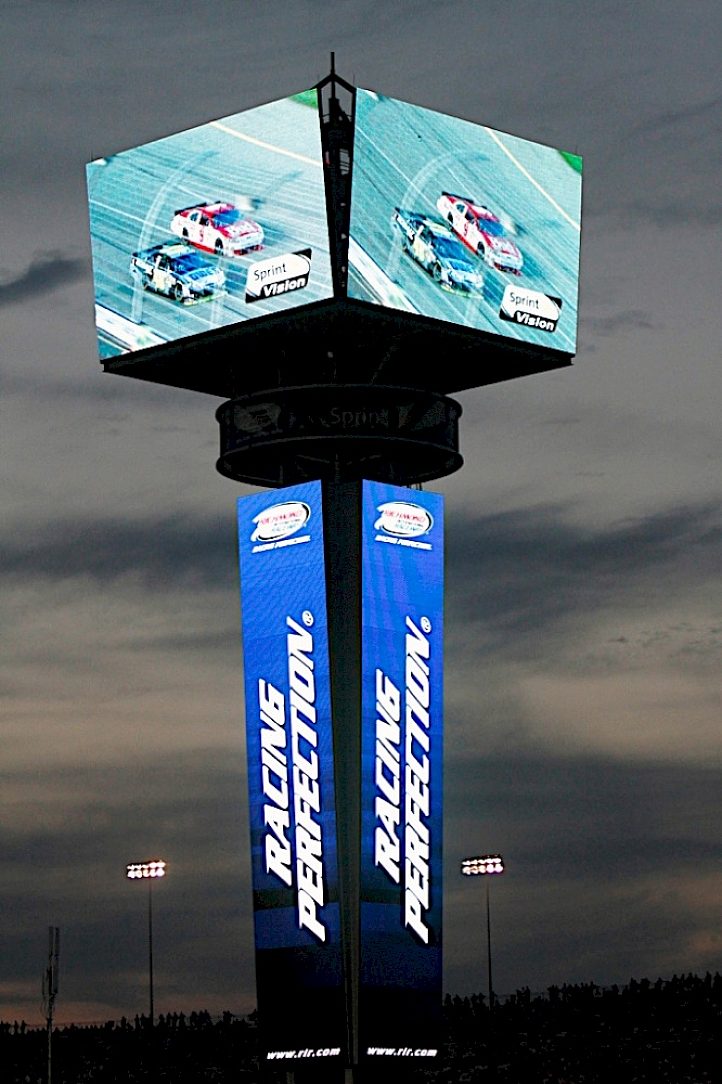 The new Leaderboard and Video Screen at Richmond International Raceway is a sight to be seen. The entire structure stands 153 feet tall and features four enormous LED video screens at the peak, making it the tallest and most spectacular leaderboard in motorsports. The four-sided design provides stunning live race action to all of the fans around the racetrack.