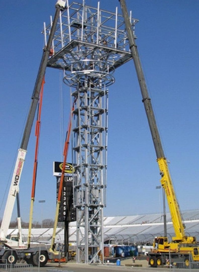 The leaderboards below each of the screens provide real-time running order, lap times, point standings and other scoring functions during races. The owner selected hot-dip galvanizing because of its ability to withstand damage during transportation and assembly. Previous experience and familiarity with hot-dip galvanizing made it the coating of choice for long lasting, maintenance-free protection of the towers steel.