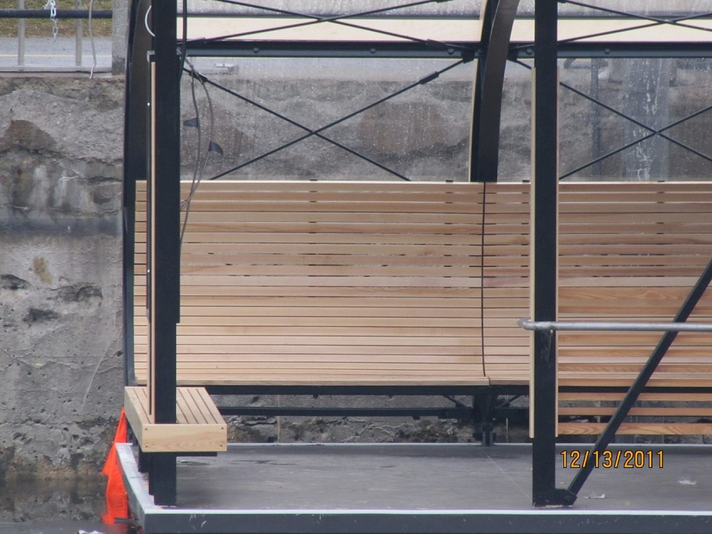 Beams, columns, braces, deck, handrails, benches, and partition support beams.