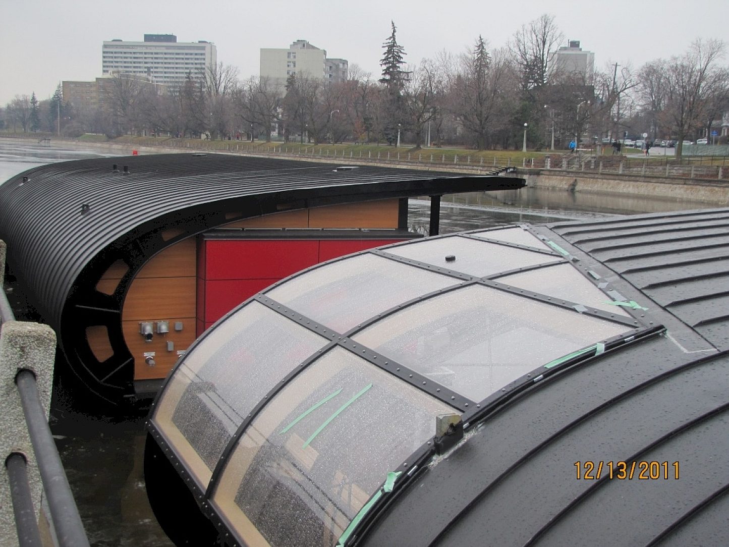 Due to an environment that includes exposure to roadway salt and ice skate abrasion, along with a requirement for longevity of function and appearance, high performance materials were needed to increase the lifetime of the buildings. A duplex system was also chosen to fit in with the look of the rest of the Rideau Canals architectural style, itself a world famous icon of Canadas capital city.