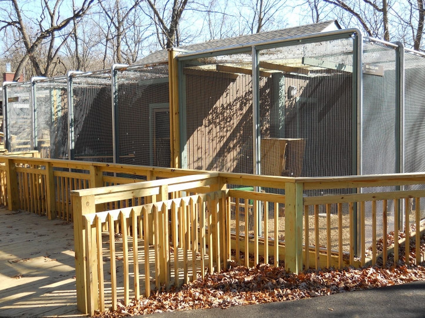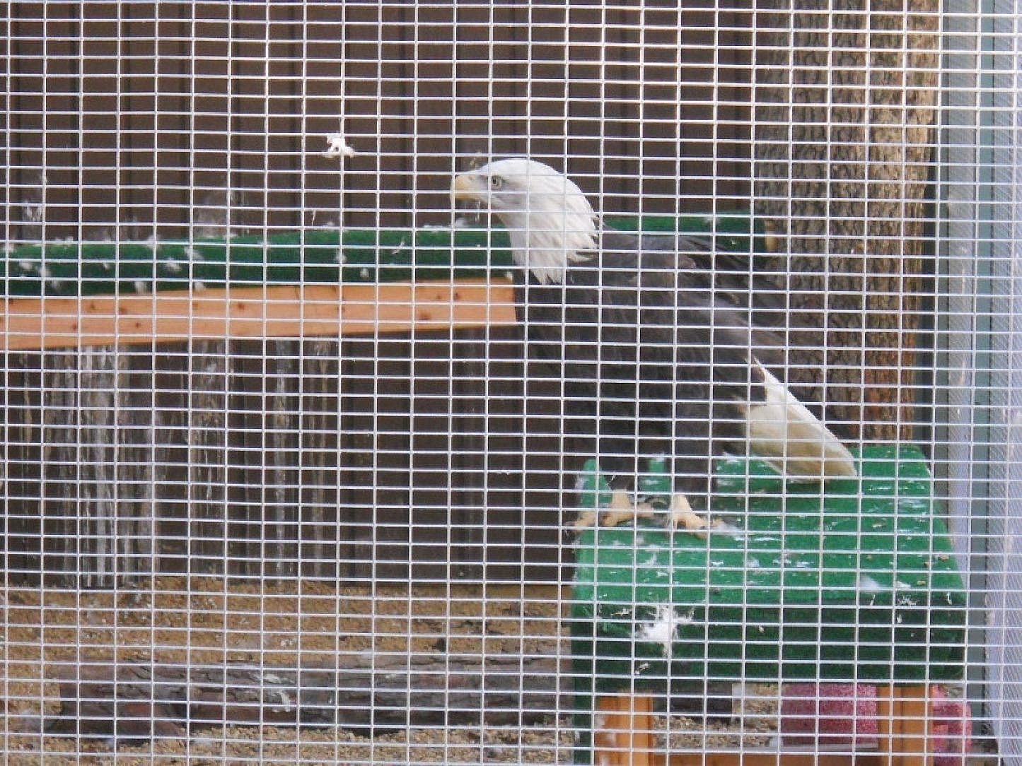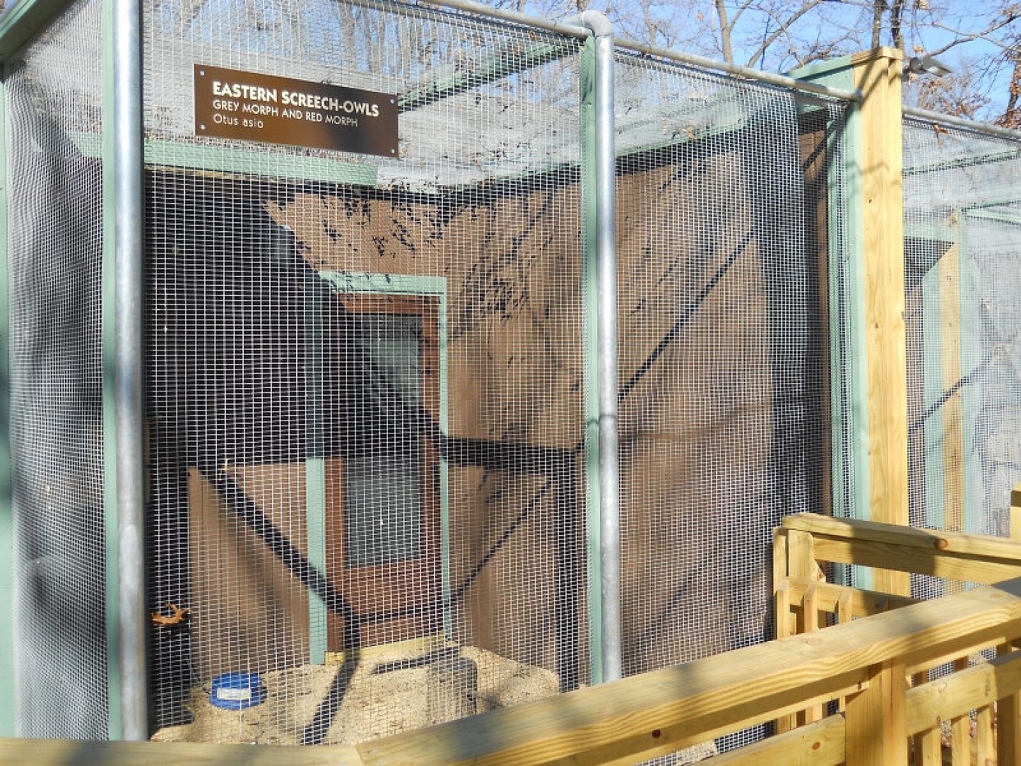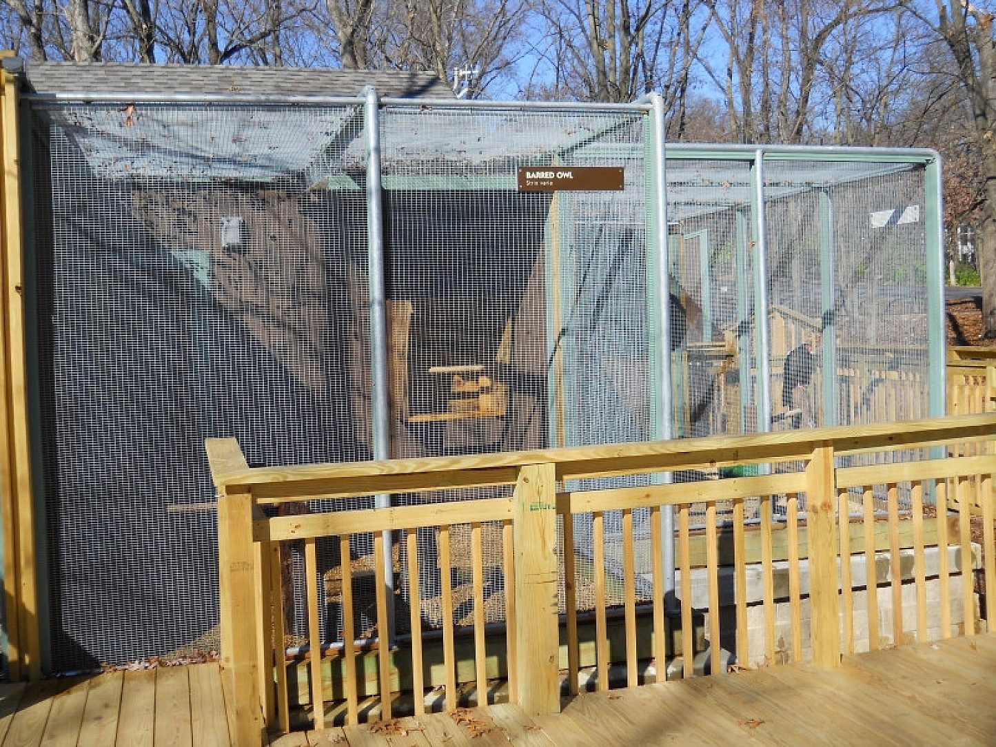 The Birds of Prey program at the Rockford Park District began at Atwood Center around 1997. The program started with a great horned owl and red tail hawk. Since that time, enclosures have been added and modified to fit different needs and expansion as birds were added to the program. The program now houses 8 birds: A bald eagle, a red tail hawk, a barred owl, a great horned owl, an American kestrel, a turkey vulture and the two newest residents, a pair of eastern screech owls. The old structure was made entirely from wood and sat on a soil base. Over time, it began to rot and repairs were constantly needed. With the new structure, the use of a galvanized frame sitting on a concrete base will reduce rot and help provide a more sanitary environment for the birds.