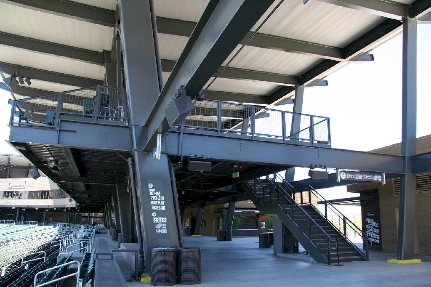 After a gruelling, multi-city competition for the privilege of providing Spring Training facilities for both the Arizona Diamonbacks and the Colorado Rockies baseball teams, the winning bidder, Pima & Maricopa Indian Tribes, wanted an attractive facility that would hold up over time without excessive maintenance costs. The teams committed to a 20 year agreement to the facility, although the duplex coating will protect the hot-dip galvanized steel much longer than that.