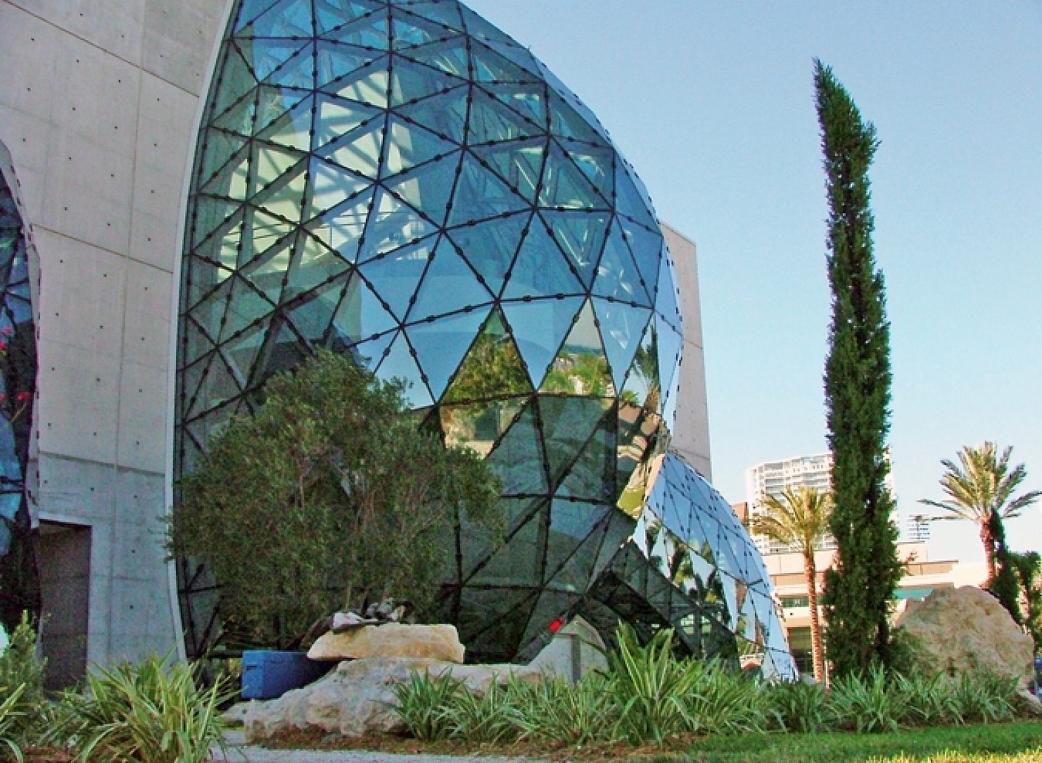 A fitting tribute to an iconic artist, the new Salvador Dali Museum is a work of art reflective of the artists characteristic juxtaposition of classical and fantastic elements. The structure, designed by Yann Weymouth and Novum Structures, features an undulating, abstract 75-foot glass structure that flows from the plaza up and around the cubist treasure box museum. The innovative structure of this popular museum will receive worldwide attention, as the geometry of the glass structure is groundbreaking in the architectural world.