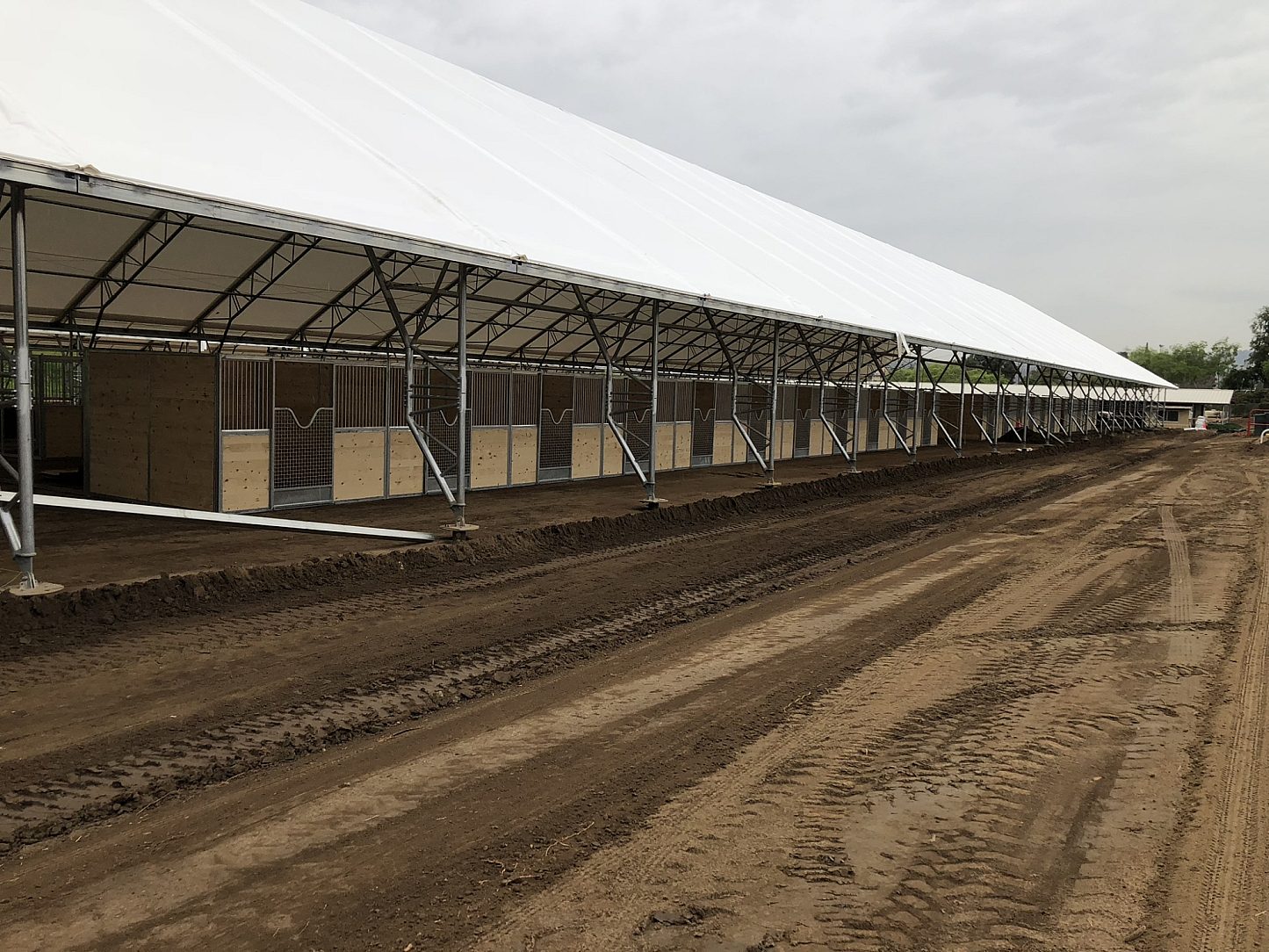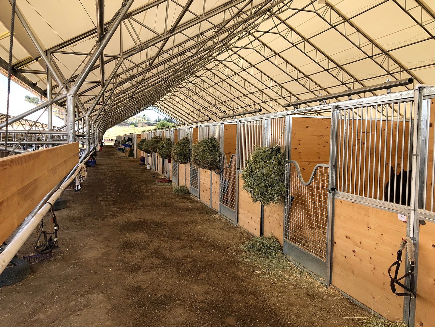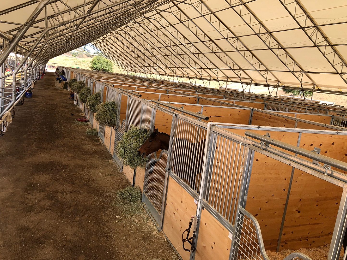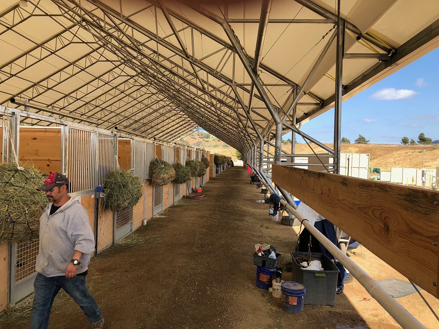 The serene setting of the training center changed dramatically on the morning of December 7, 2017, when tragedy struck. A small brush fire, fanned by unusually powerful Santa Ana winds, quickly grew in size and turned deadly. What would become known officially as the Lilac Fire, the winds continued to rage, picking up speed and burning its way west, eventually reaching the San Luis Rey Downs Training Center. In the end, the fire destroyed 8 barns, including 250 horse stalls, and sadly took the lives of 46 horses. Of the many other horses that were displaced that day, temporary living arrangements were made, but only for a very short period of time. The 250 new stalls had to be move-in ready by April 1, 2018. With no time to waste, the owner, fabricator, and galvanizer sprang into action.