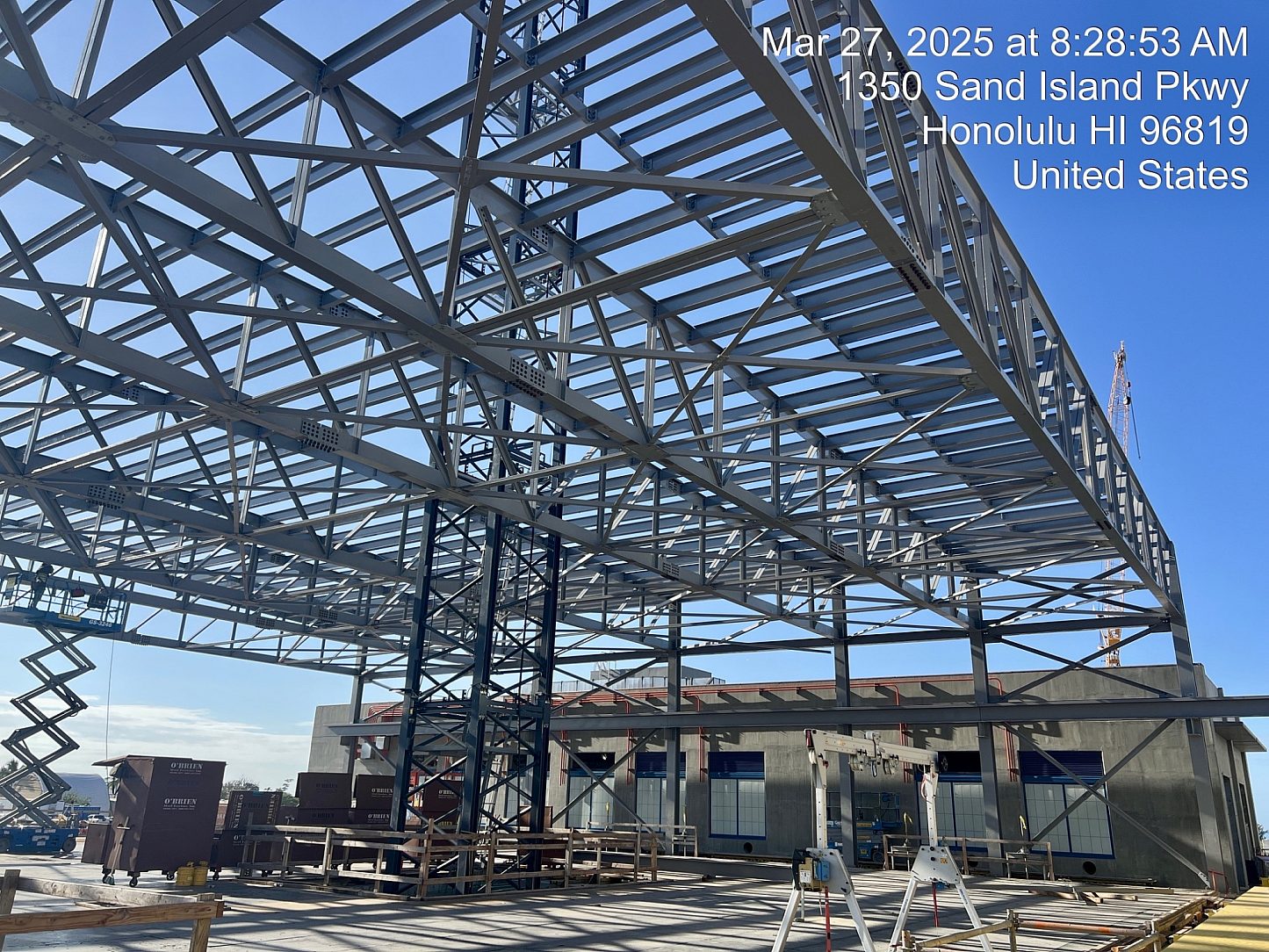 The complexity of this project required extensive coordination across steel fabrication, coating applications, marine shipping logistics, and multi-phase construction activities—all while maintaining continuous operation of Hawaii’s largest wastewater treatment facility. The coastal location exposes structural steel to high humidity, salt air, and accelerated corrosion, making advanced protection essential. The multilayer corrosion-control strategy, consisting of hot-dip galvanizing followed by primer and topcoat, was selected to withstand these harsh environmental conditions and ensure complete coverage, even in areas that could not be prepared through conventional means. This approach also contributes to long-term cost effectiveness by minimizing maintenance requirements and extending the service life of the structural components.
