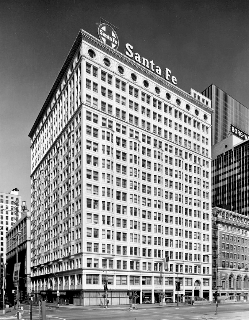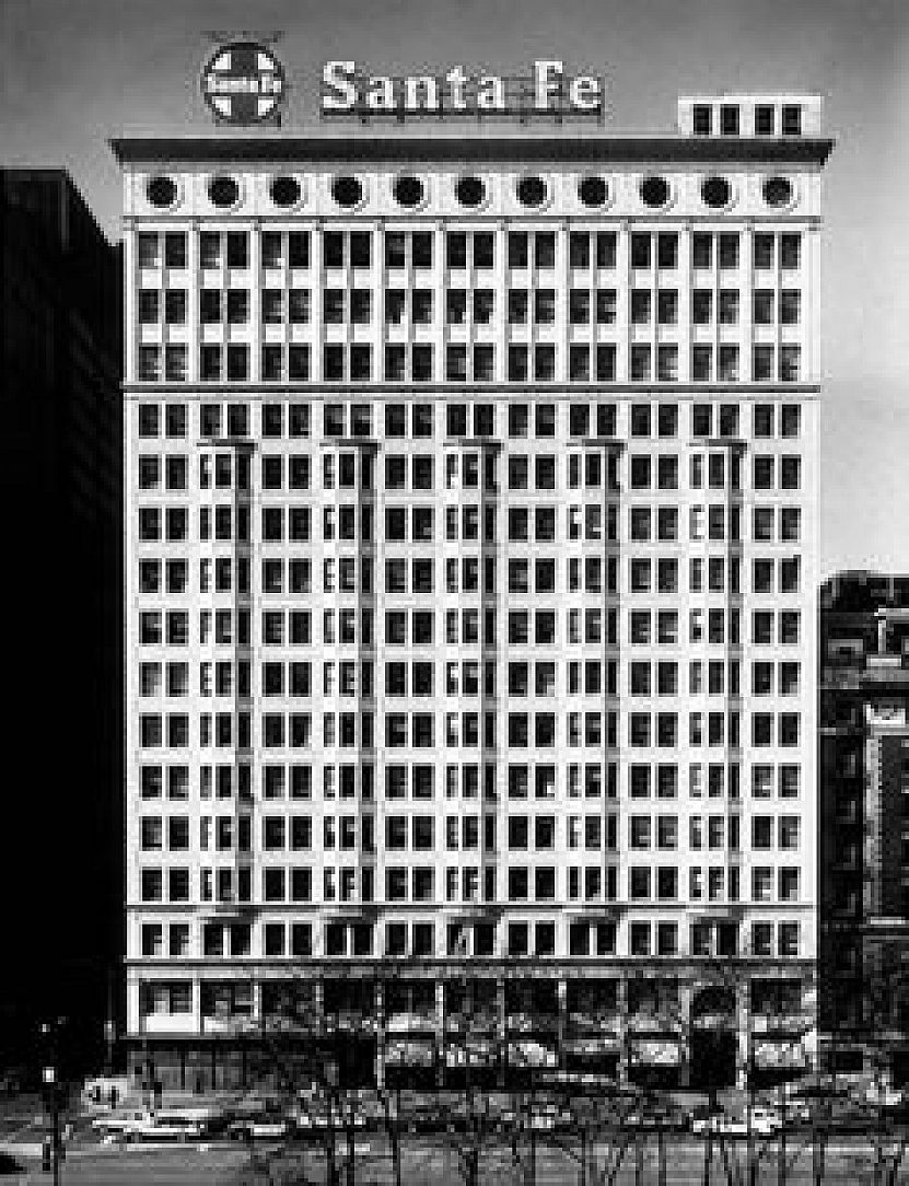 The sign was originally installed with blue and yellow neon that included a 22-ft. diameter Santa Fe cross logo to the left of the Santa Fe letters. After the railroad began an extensive remodeling of the Railway Exchange Building in 1982, a new almost identical sign was designed and installed with the removal of the cross logo. The railroad would go on to vacate its downtown offices and relocate to Schaumburg, IL in 1991. It later merged with Burlington Northern in 1995 and relocated to Fort Worth, Texas.
