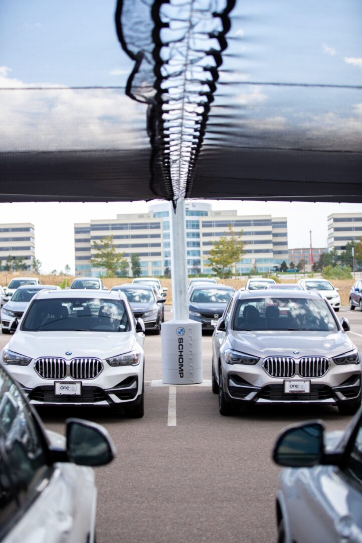 Schomp Automotive Group decided on a different course of action. Rather than just waiting and watching the skies, the designers at Schomp Automotive Group began to develop a system to mitigate the hailstorm threat. In 2021, Schomp began to construct a hail-net system called “Hail No” to protect their exposed car inventory. This creative design uses large 10” and 12” diameter steel tube columns set in concrete to support a strong netting system with spans as long as 63’, capable of supporting up to a foot of snow. The netting system is designed to be easily taken down and stored for the winter months when snowstorms can occasionally exceed the Hail No system load capacity.