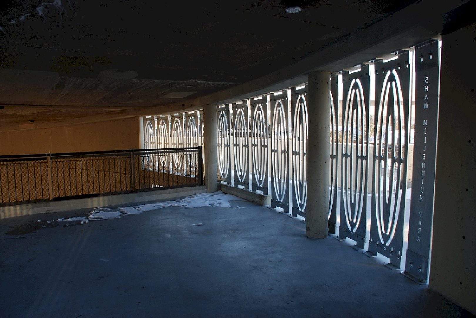 The biggest challenge that came from galvanizing the steel was labeling the pieces as each of the 84 panel pieces had a slightly different height to accommodate the change in elevation throughout the stairwell. The solution that resulted from this was an imprinted letter at the bottom of each panel. It eliminated any chance for error during installation and allowed for quick effective replacement of a panel if required in the future.