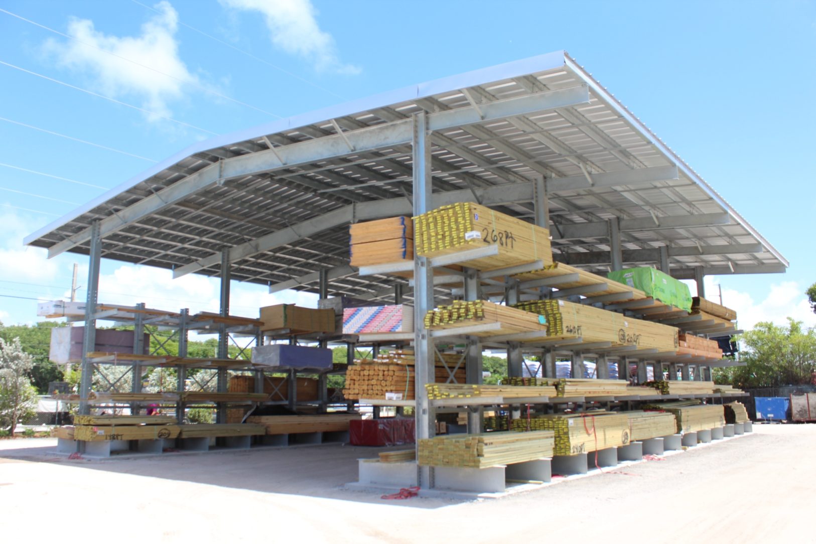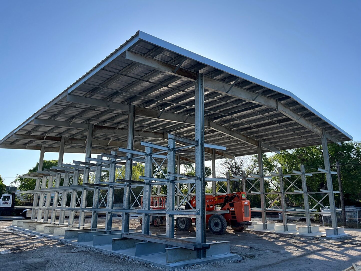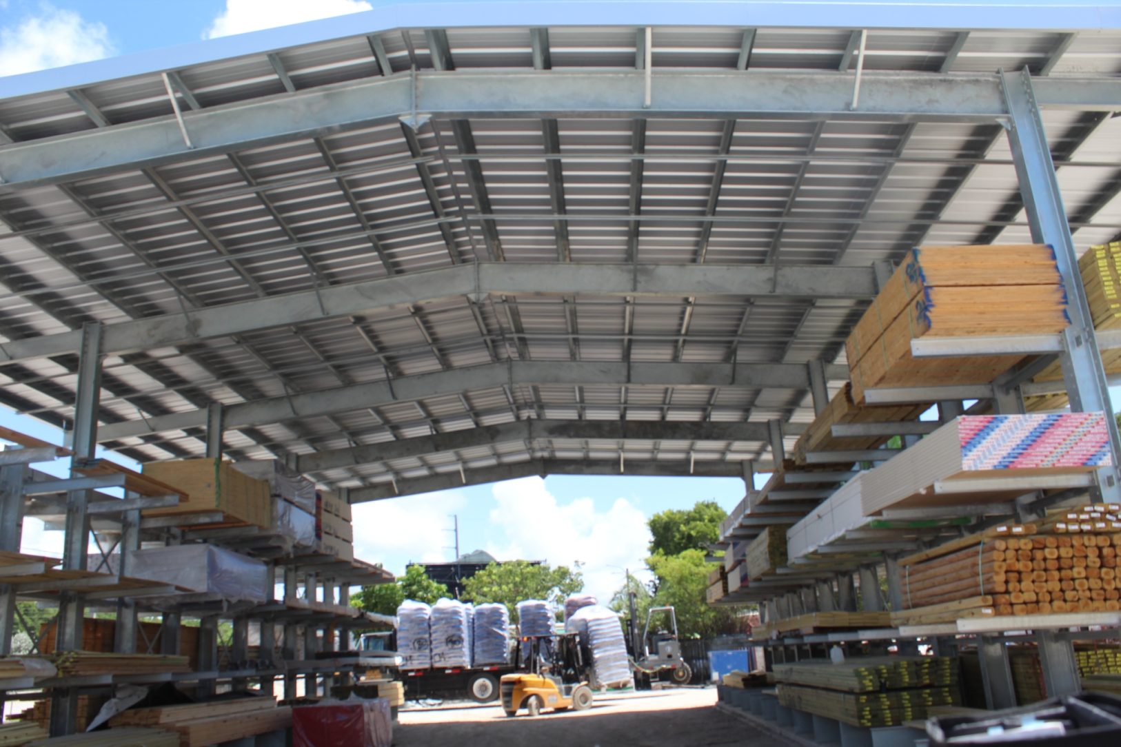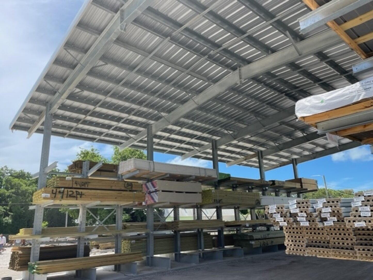 Because the heat of the outdoors is a major concern for warping lumber, the covered racks will protect the wood for years to come and ensure that customers are satisfied with a good product. Not only will the canopy provide shading for the lumber, but also a cost-effective solution for the business owners to have a retail space outside of their showroom. Customers are now able to simply drive their car between the racks and receive their product without having to make the trip inside and drag out their heavy material.
