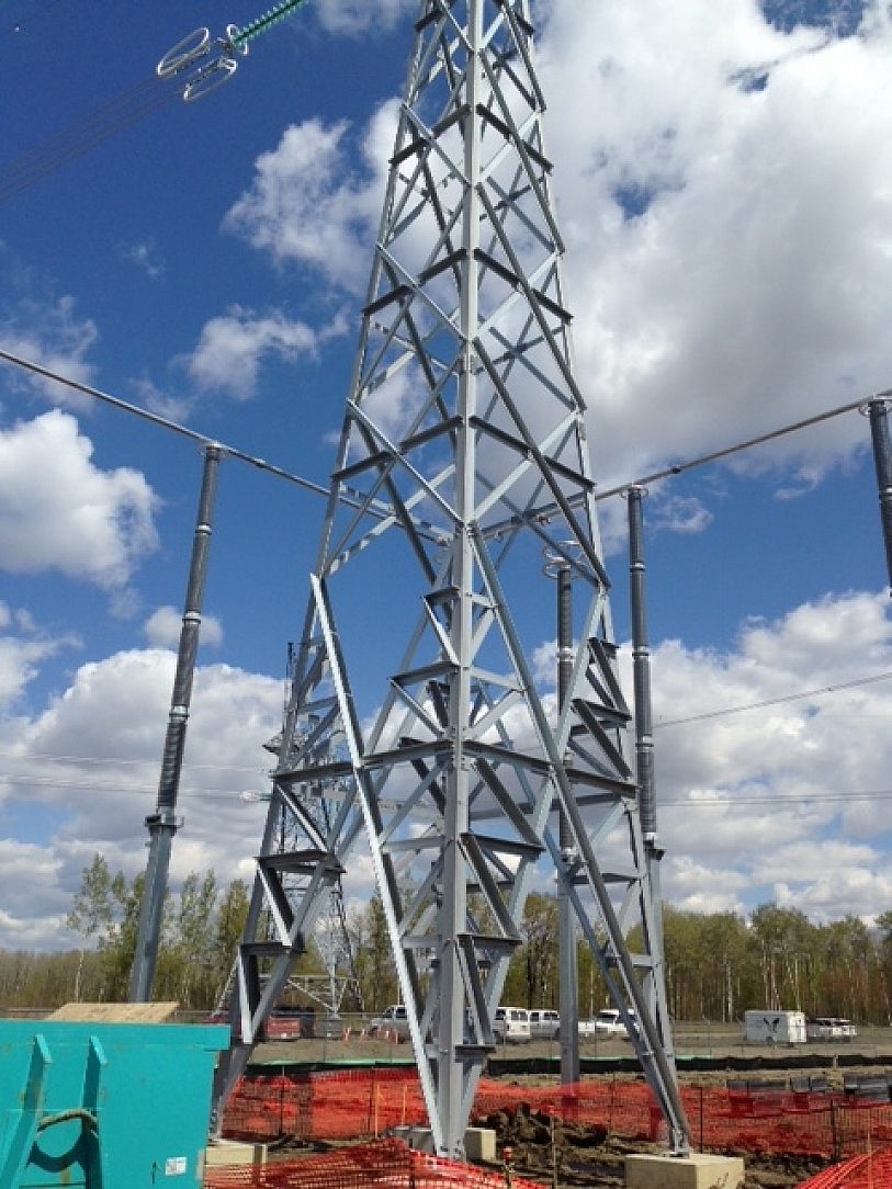 Two new 500KV electrical power transmission lines being built in Alberta Canada required four special substations to convert Direct Current to Alternating current. These Siemens substations were required in a very tight two month production schedule that tested both the fabricator and the galvanizer.