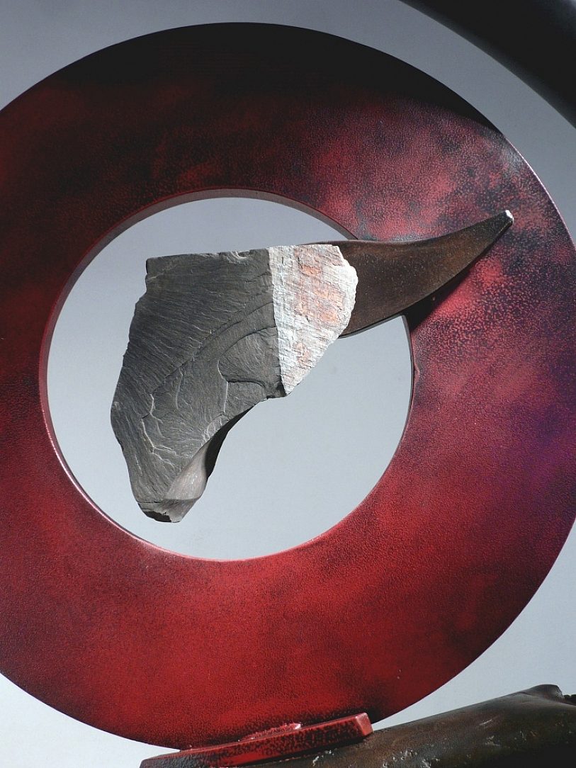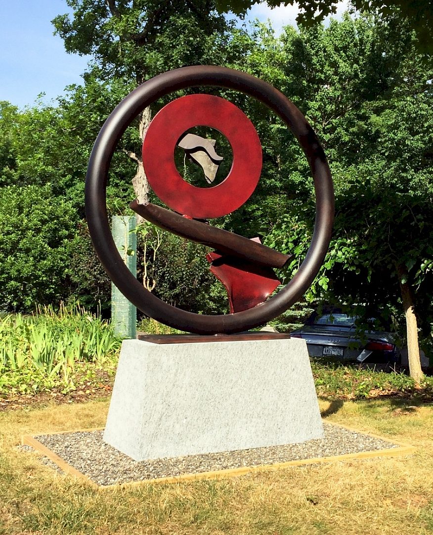 Sisphean Circle LXIII is the latest creation by award winning sculpture John Van Alstine of Wells, New York located in the southern region of the Adirondack Mountains. Mr. Van Alstine, known for his stone and metal abstract sculptures in USA, Europe & Asia, is a graduate of St. Lawrence University, Kent State (BFA) and Cornell University (MFA). He has taught at the University of Wyoming and the University of Maryland.