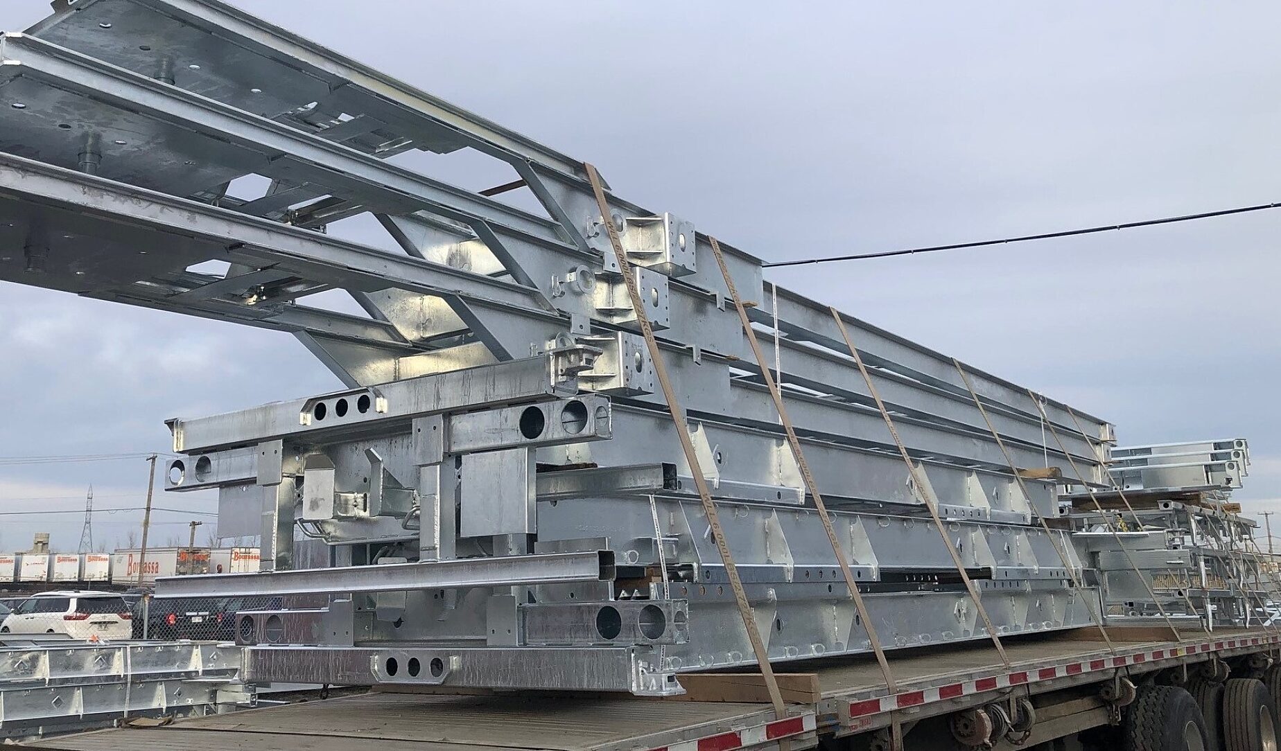 Careful coordination between the engineers and galvanizer maximized design, minimizing cost and weight wherever possible. The large baths of the galvanizer allowed not only single immersion but also multiple units per immersion, further lowering cost. Another benefit was the galvanizer's automation and information sharing systems that assured every dip received the exact same controlled processes including loading and bundling instructions for safe damage free transport.