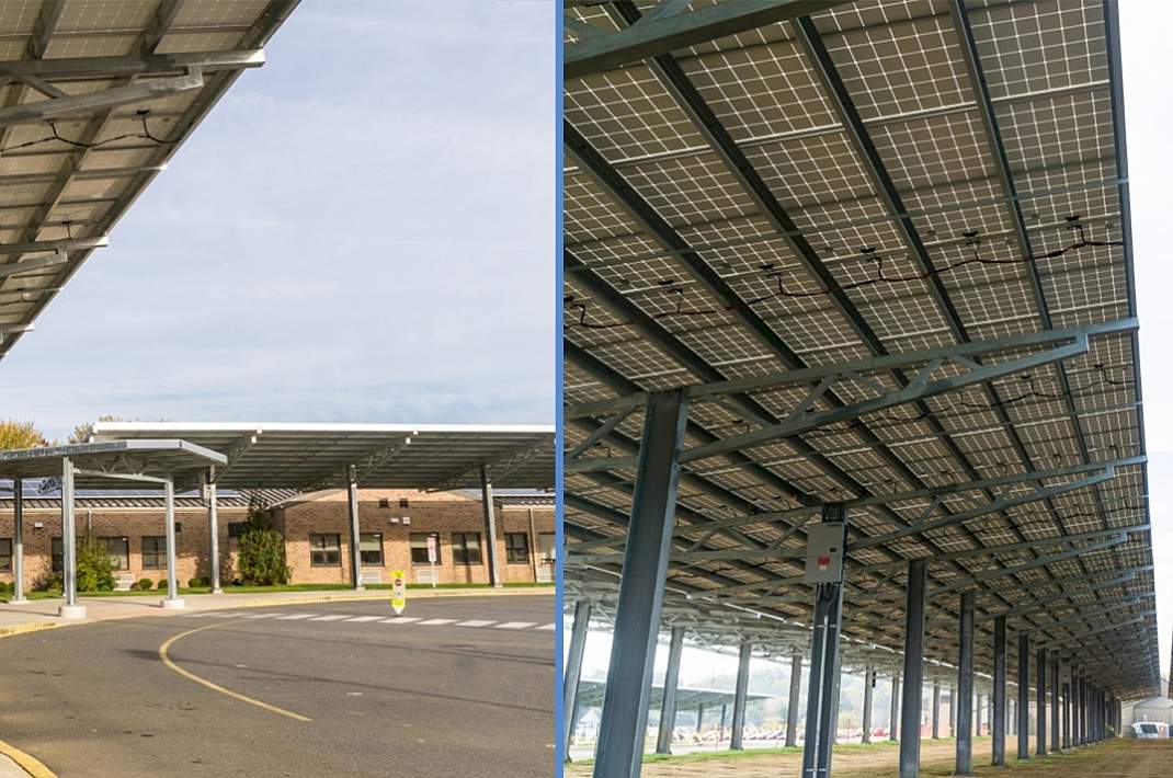 Smithtown High School West Campus and PSE&G are participating in an energy performance project that just installed 3 acres of solar canopies throughout the school’s parking lot. With 5,422 solar modules, it will generate 2.7 million kilowatt-hours of electricity every year. Also with energy performance, the canopies are equipped with charging stations for electric cars. This project will be currently the largest solar carport system owned by a school district in New York State. These canopies will save the school district $1 million annually in energy cost that will reallocated back into education programs.