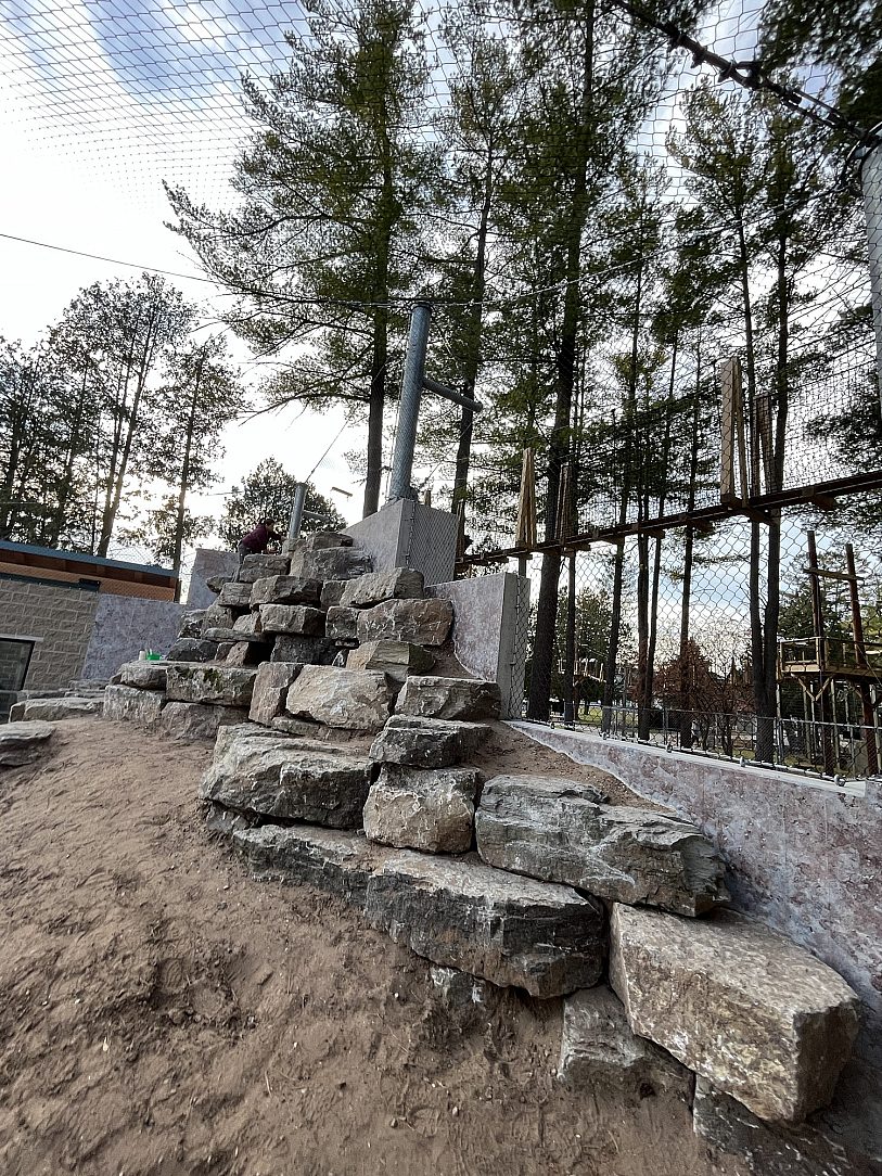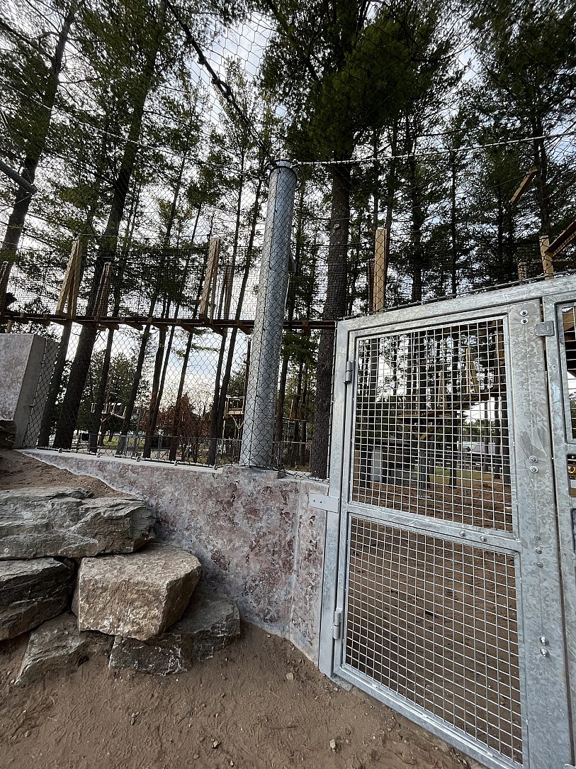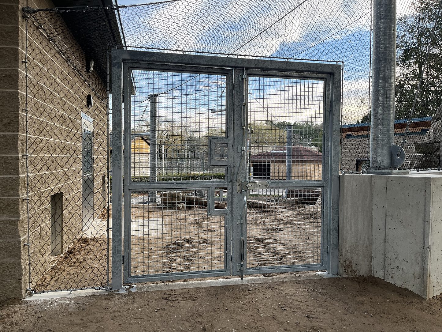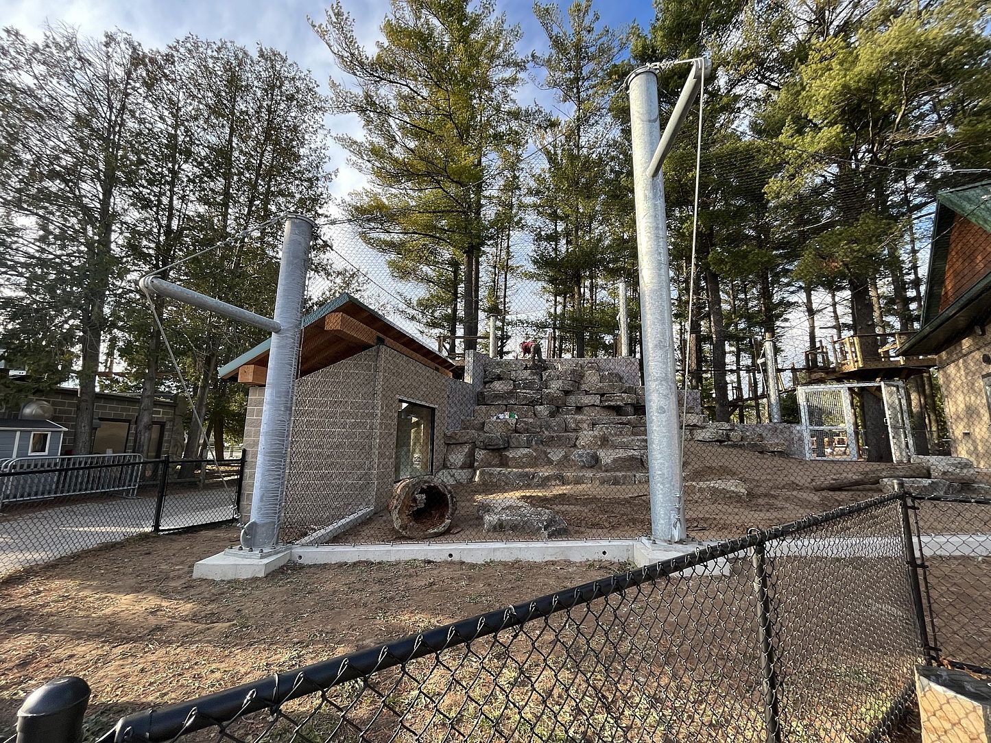 The new snow leopard habitat encompasses 912 square feet of indoor space including an indoor area for training and behind-the-scenes experiences, as well as over 1000 square feet of outdoor space featuring a new fourteen-foot-tall rock wall structure. The outdoor area is surrounded by galvanized steel to give it a finished, natural look which was integral to the aesthetic design. The new building will allow keepers the ability to move the snow leopards individually by including two indoor shifting systems. The outdoor area is surrounded by netting that is easy to see through to enhance the experience. The netting is supported by galvanized steel designed to control corrosion over the life of the enclosure and make it last for many generations of snow leopards to come. Combined, they are not your standard looking zoo enclosure. This is a highly creative system to provide the best experience that can be found today.