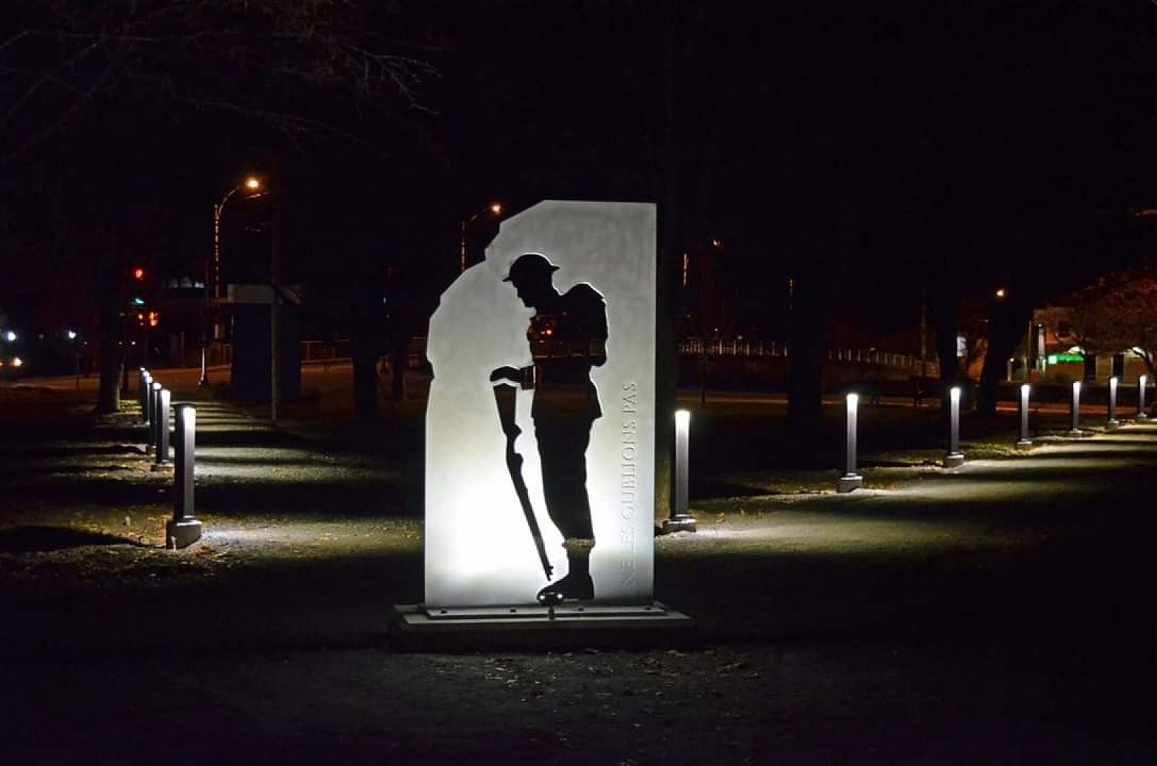 The Great War was Canada’s entrance to the world stage and with almost 10% of its population serving during the war and almost a tenth of them killed in action it was a monumental event in Canadian history. With 1918 marking the centennial of that war the beautiful little town of Montmagny on the shores of the mighty Saint Lawrence River decided to do its part to pay homage to the sacrifice made by their residents a hundred years ago. The result is a simple but striking monument in the park in front of the city hall.