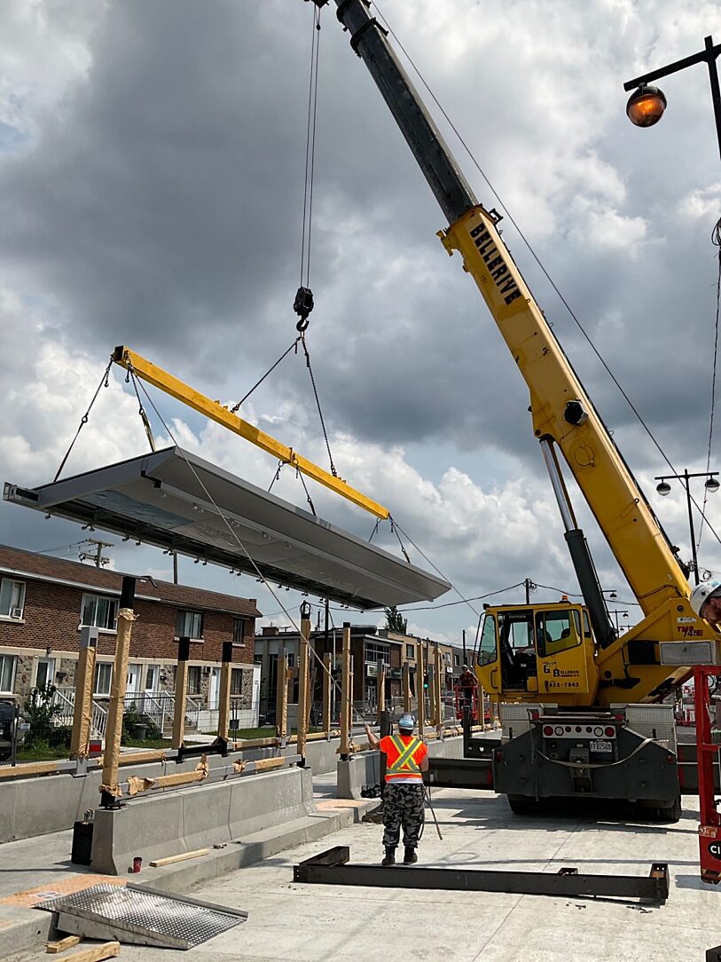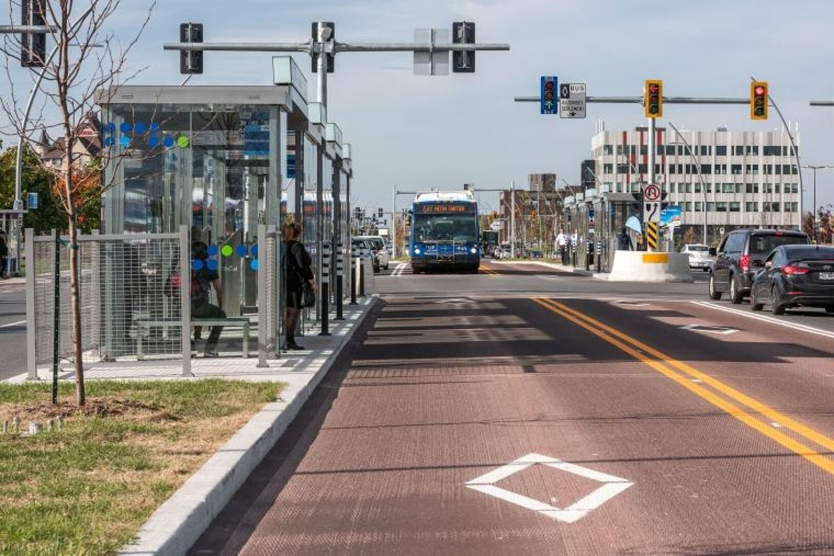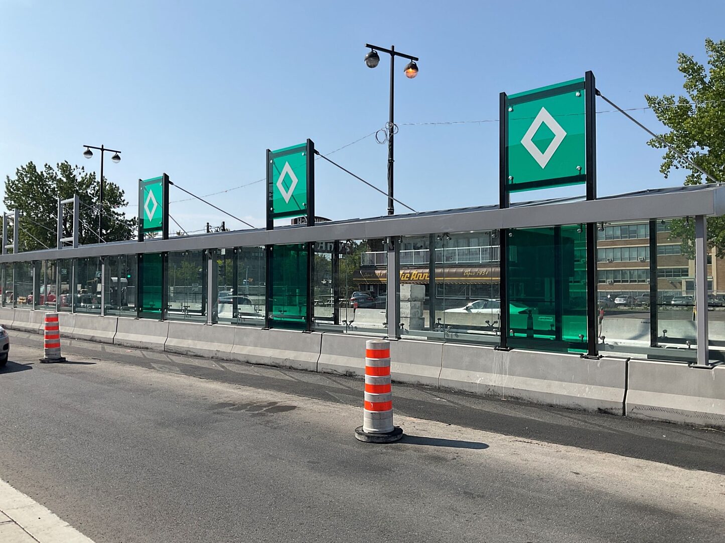 The first project in this strategy was the Pie-IX SRB line, providing rapid north-south transit for the eastern portion of the city. Construction for this $500 million line began in 2019 and service started in 2021. This eight-mile route incorporates twenty stations (known as “Abribus”) that are built primarily inside an expanded median of this pre-existing broad boulevard.