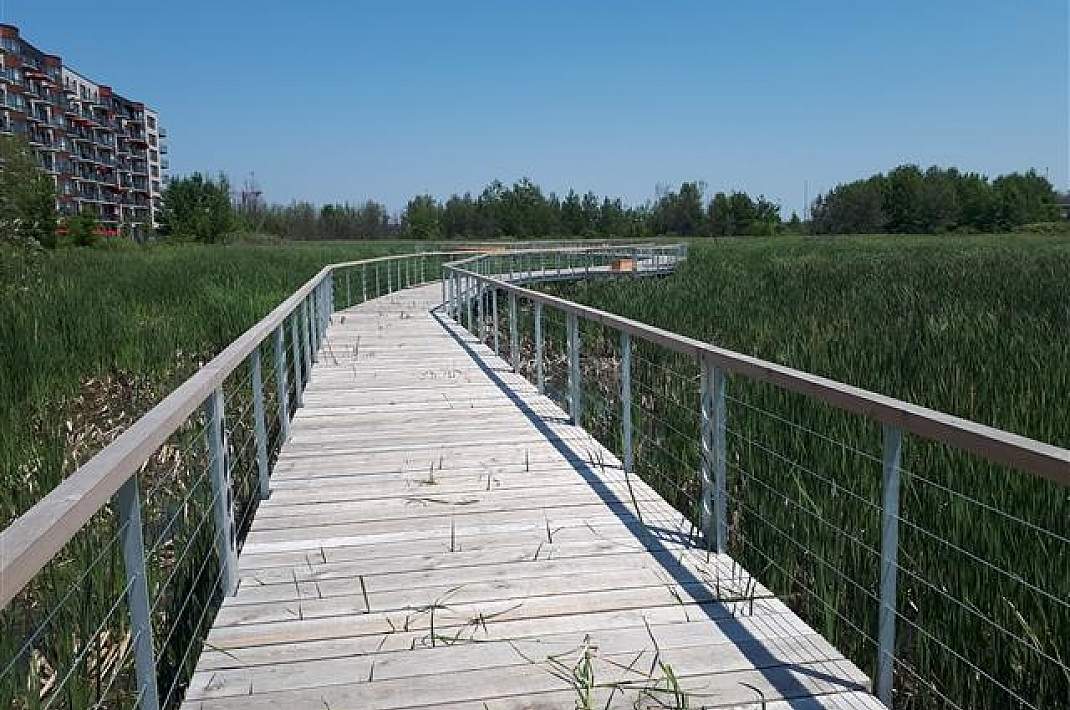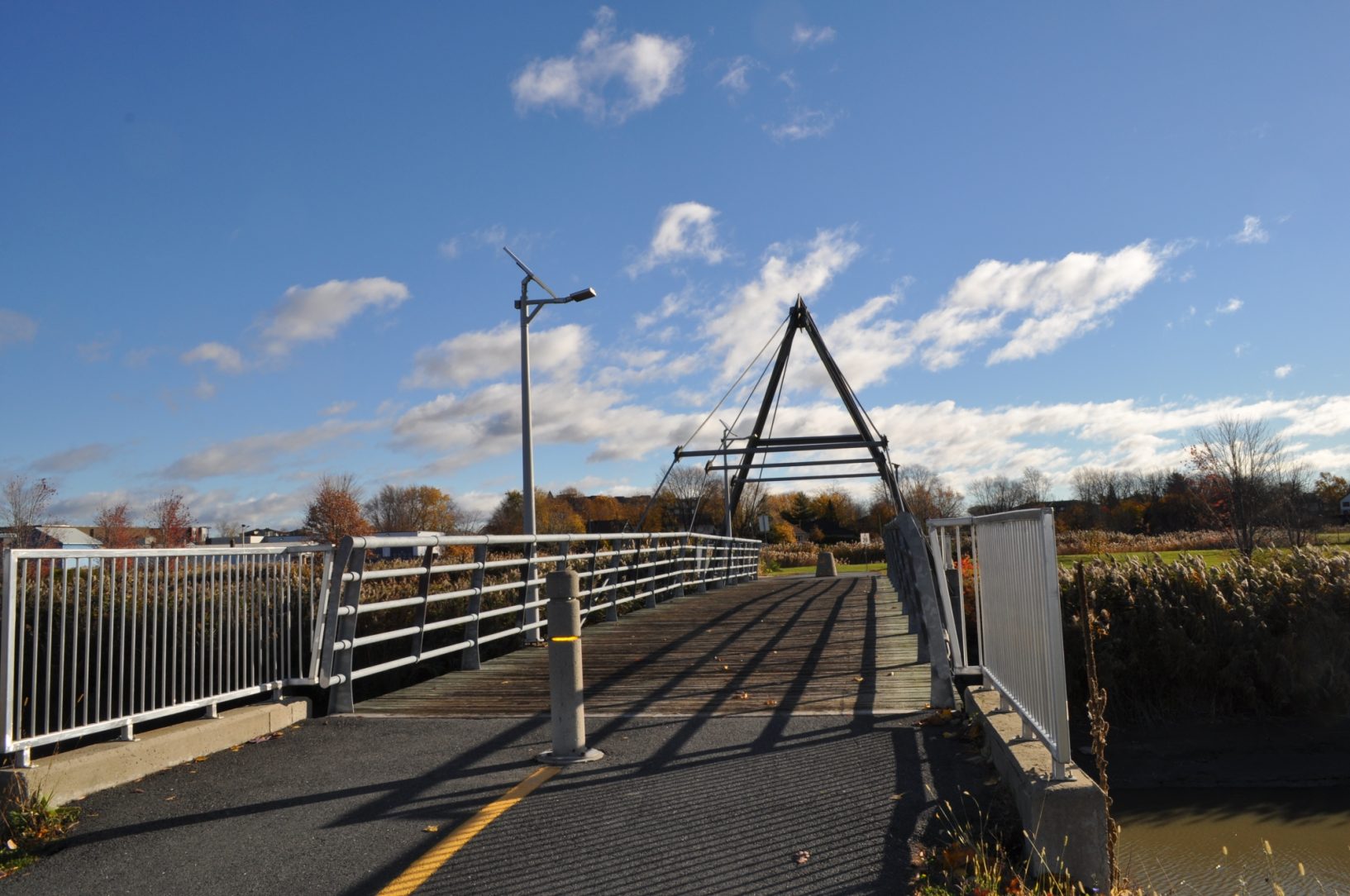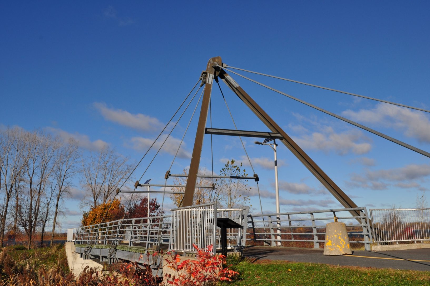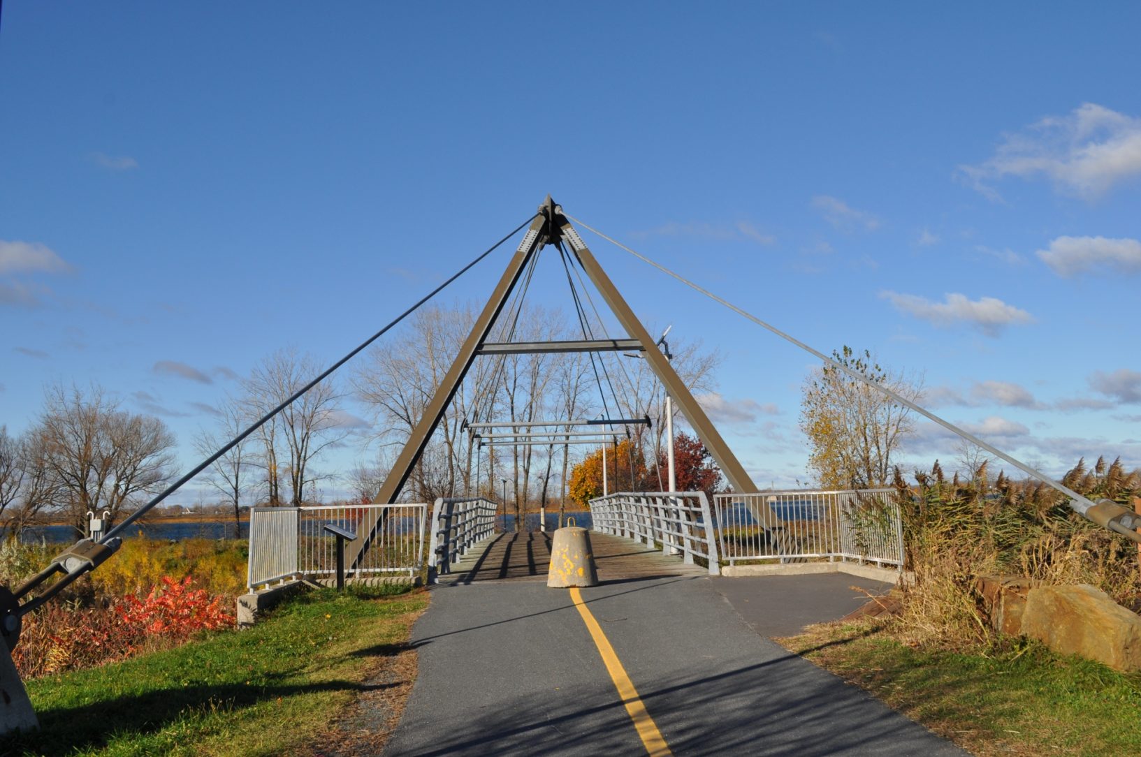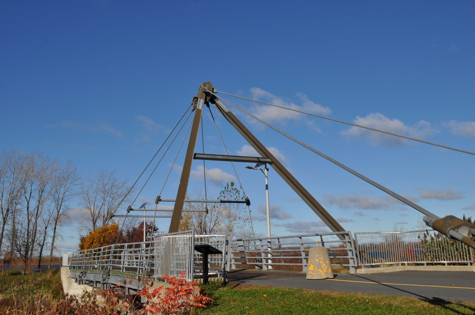 The city of Varennes, located on the Montreal's south shore, has invested 2 million dollars to renew their parks and recreation infrasturture for their 350th anniversary. The project included the construction of a bicycle and pedestrian trail along the St-Lawrence river. The bridge links the village bike path to the one along the St.Lawrence River.