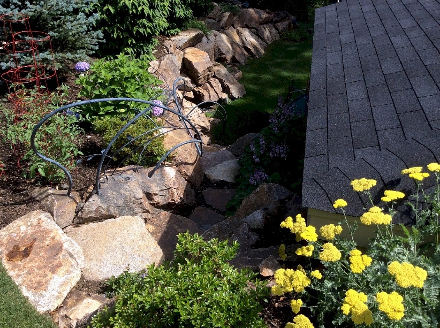 The railings were designed to appear as a vine, integrated into the adjacent rock architecture and landscape planting, while serving as a handrail available to be gripped at needed places in ascent/descent.