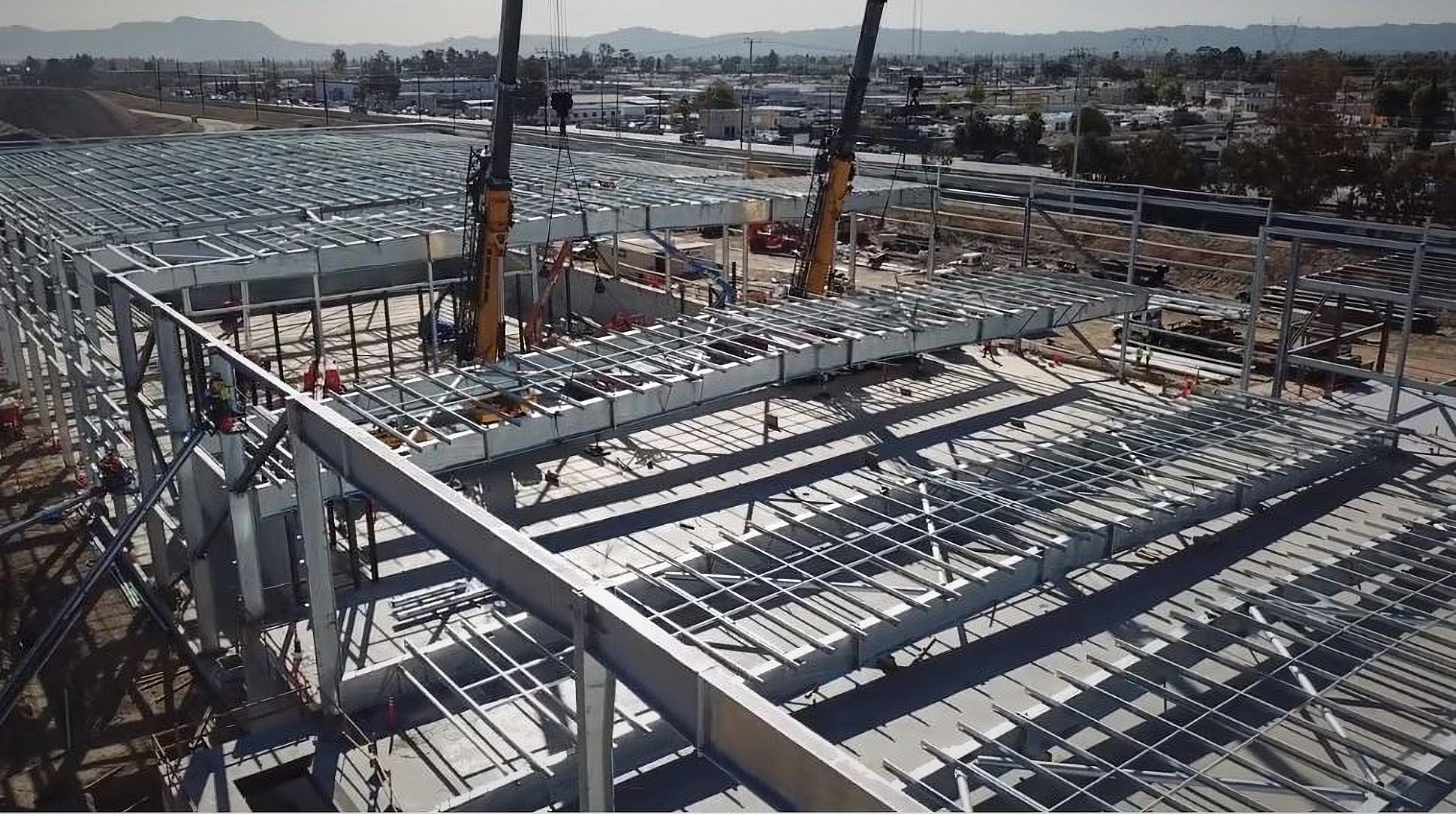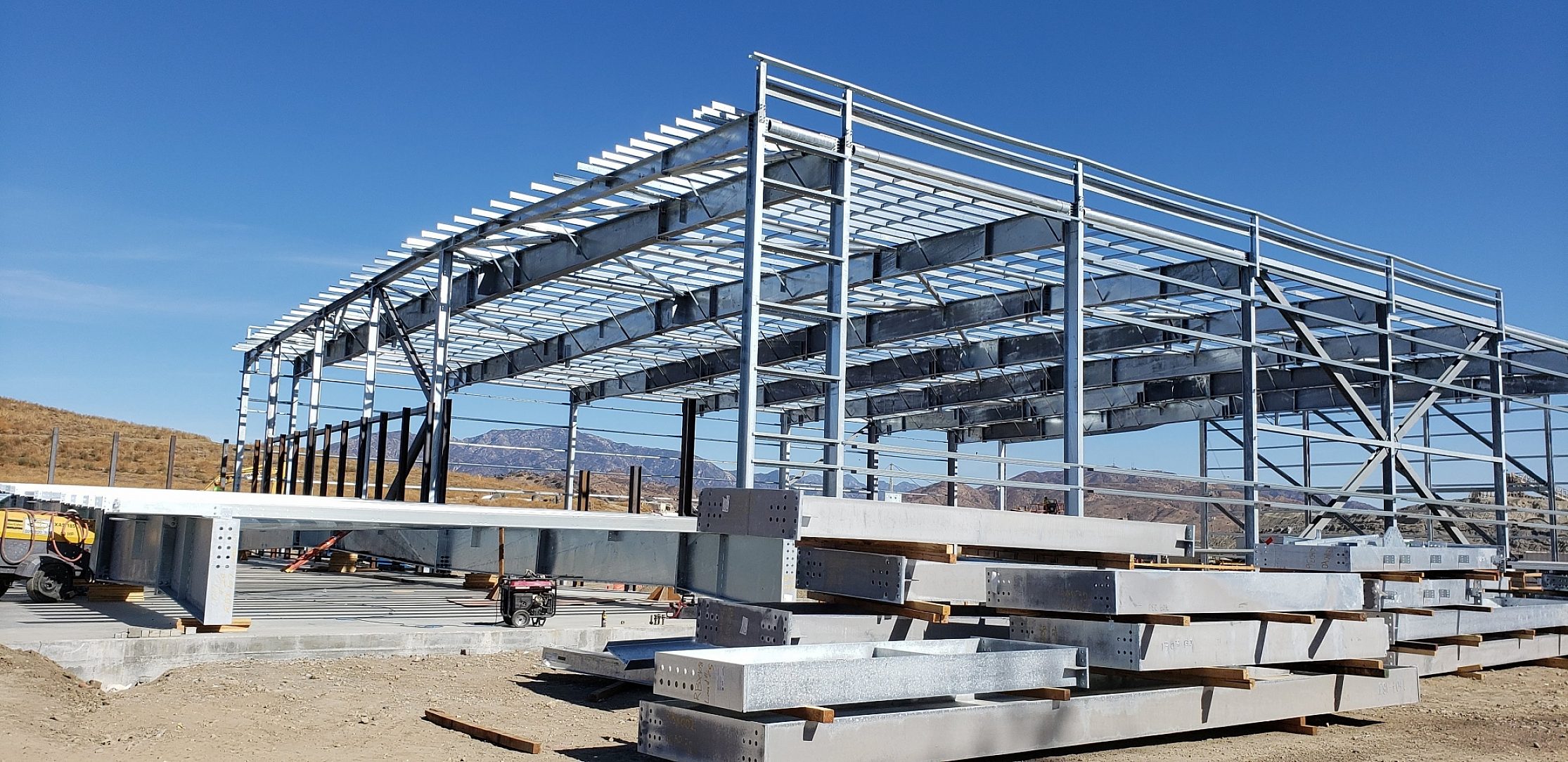 The specifying of hot-dip galvanizing was an absolute must for the steel on this project because it is located 25 miles northeast of the Pacific Ocean exposing the building’s steel substructure to daily exacerbated levels of salty, sea air and environmental oxidation. All of the carbon steel structural framing was custom designed using hot-dip galvanized (tapered) fabricated beam girders supported by very long structural beam columns with intricate tube steel framing throughout both facilities.