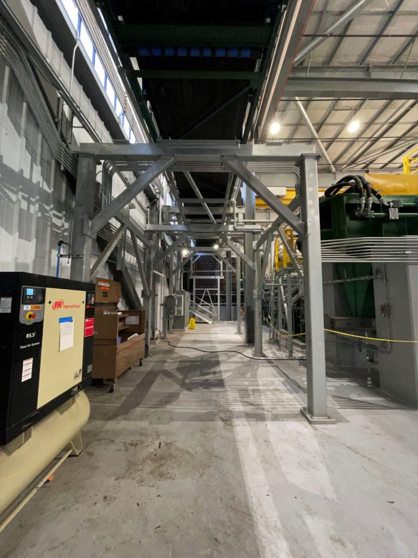 Due to the sheer size and weight of the material only a few pieces at a time could be hung securely on each dip rack and a very large molten zinc kettle was required to process each rack efficiency through the hot-dip galvanizing plant. In the end, 883 tons of carbon steel would be hot-dip galvanized over a 10-month timeframe with multiple loads per week being delivered to the jobsite, ensuring all construction schedule deadlines were met.