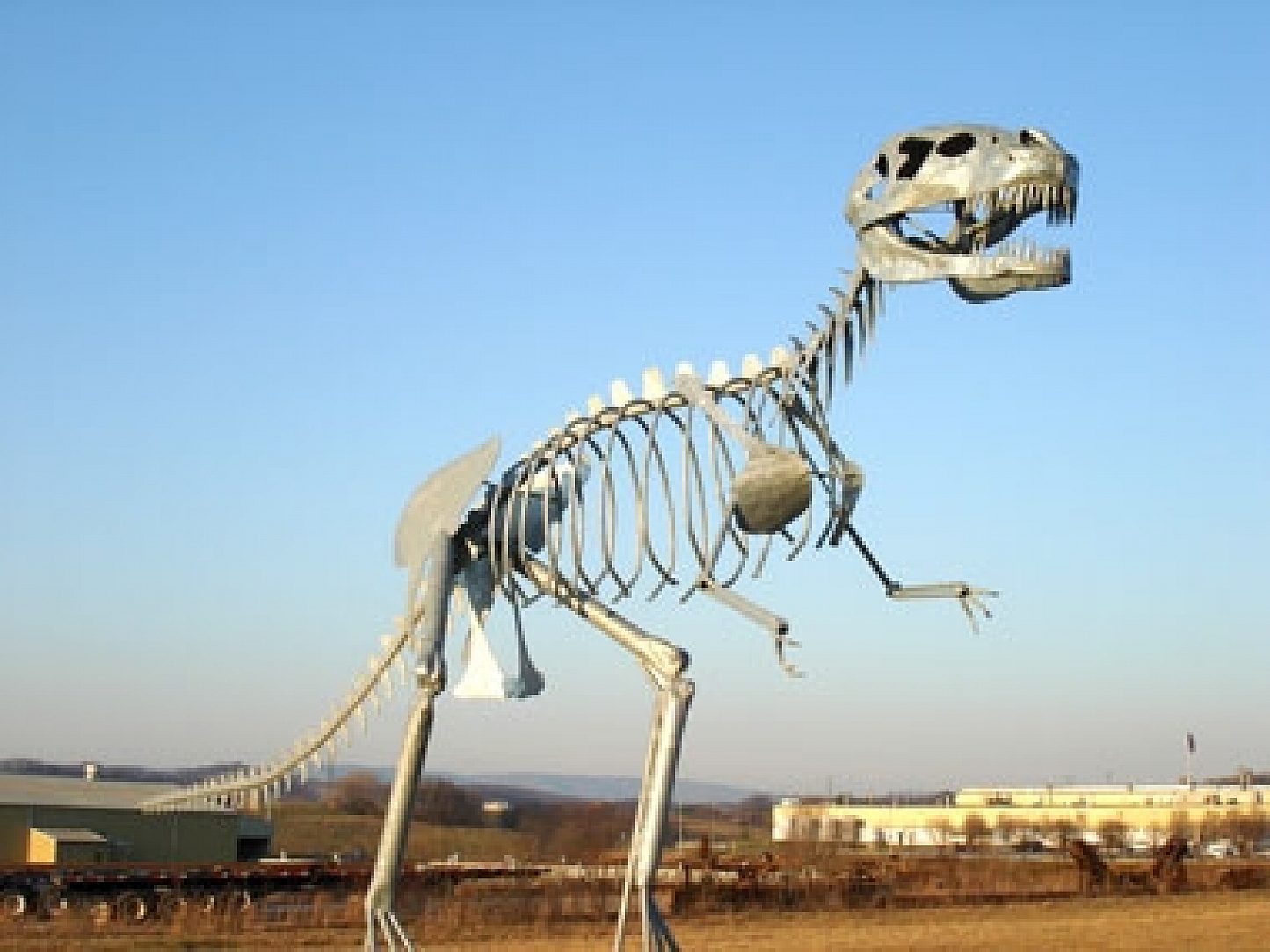 Customers donated steel such as pipe, rod, bolts, nuts, etc. to help create the dinosaur. Zophia Kneiss Farrier, of Burning Art, listened to their ideas and welded them into reality creating the T-Rex. Today the T-Rex sits outside the galvanizing plant for all to see, and has become quite a landmark with people stopping by to take pictures. Additionally, the new slogan and images of the T-Rex have been incorporated in all of the companys marketing materials. Creating the T-Rex and marketing slogan based on the benefits of galvanized steel will provide Bristol Galvanizing a creative and unique marketing centerpiece for years to come.