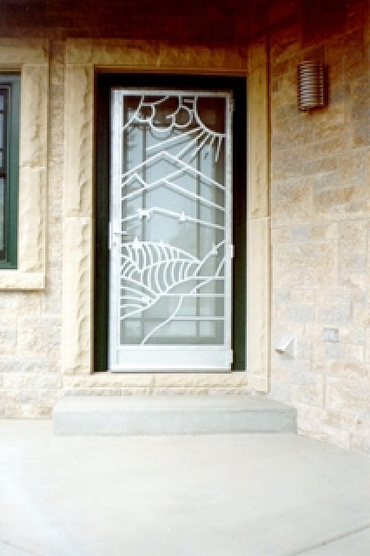 This project was an artistic-designed screen door for a beautiful front door on a house in Nebraska. The entire door frame, jamb, and handles were galvanized. The front panel is a landscape design with sun, clouds, animals, trees, and hills. Galvanizing was the most cost effective over stainless steel in design and manufacture. Galvanizing gave the needed protection between the individual panels where the screen was sandwiched. Any other protective coating would have allowed for unappealing rust.