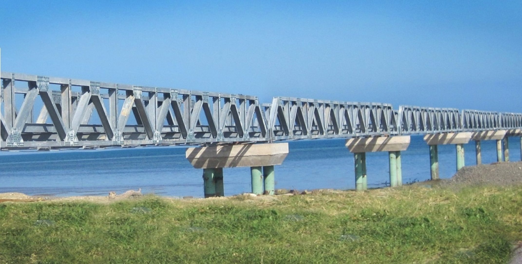 The climate of this region over the river has been bad for steel. Galvanizing was selected for it's durability to withstand the elements, including sand and wind.