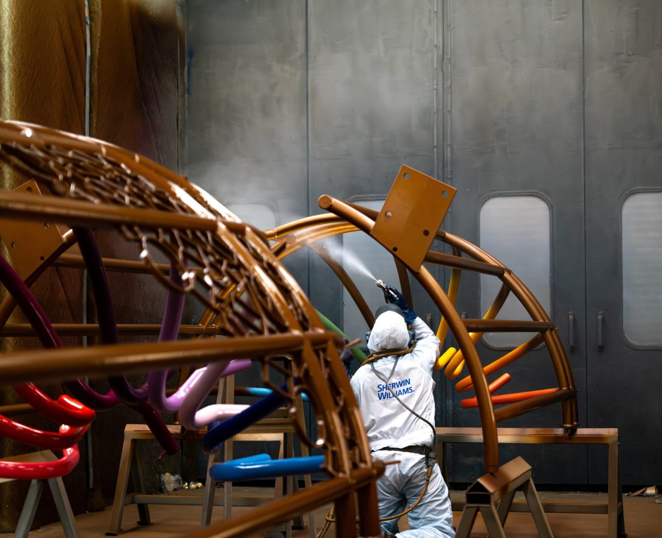 This project also demanded artistry. To echo Carlyle’s creative spirit, the team employed a duplex coating system: a vibrant colour finish layered over the galvanized base. The duplex approach transformed the utilitarian strength of galvanizing into an aesthetic canvas. The zinc beneath anchors the paint chemically, allowing the colours to last two to three times longer than they would on bare steel. It’s a marriage of science and art, one that ensures both protection and beauty in a single system.