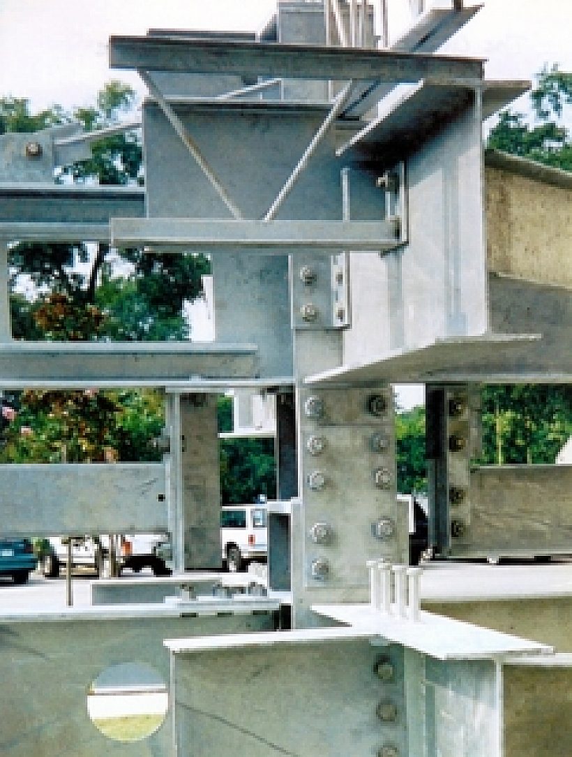 The Design Aide is located for full visibility and access adjacent to the Civil Engineering Building on the Citadel's campus. Numerous parades, tour buses and visitors for various function, as well as cadets themselves, regularly view this structure. Complete disassembly of the painted structure and sandblasting was required to remove the severely chipped paint that was allowing base steel corrosion. The Design Aide required outstanding corrosion prevention. It is erected outside and exposed to the elements year round. It is located approximately 150 yards (137 m) from a saltwater basin.