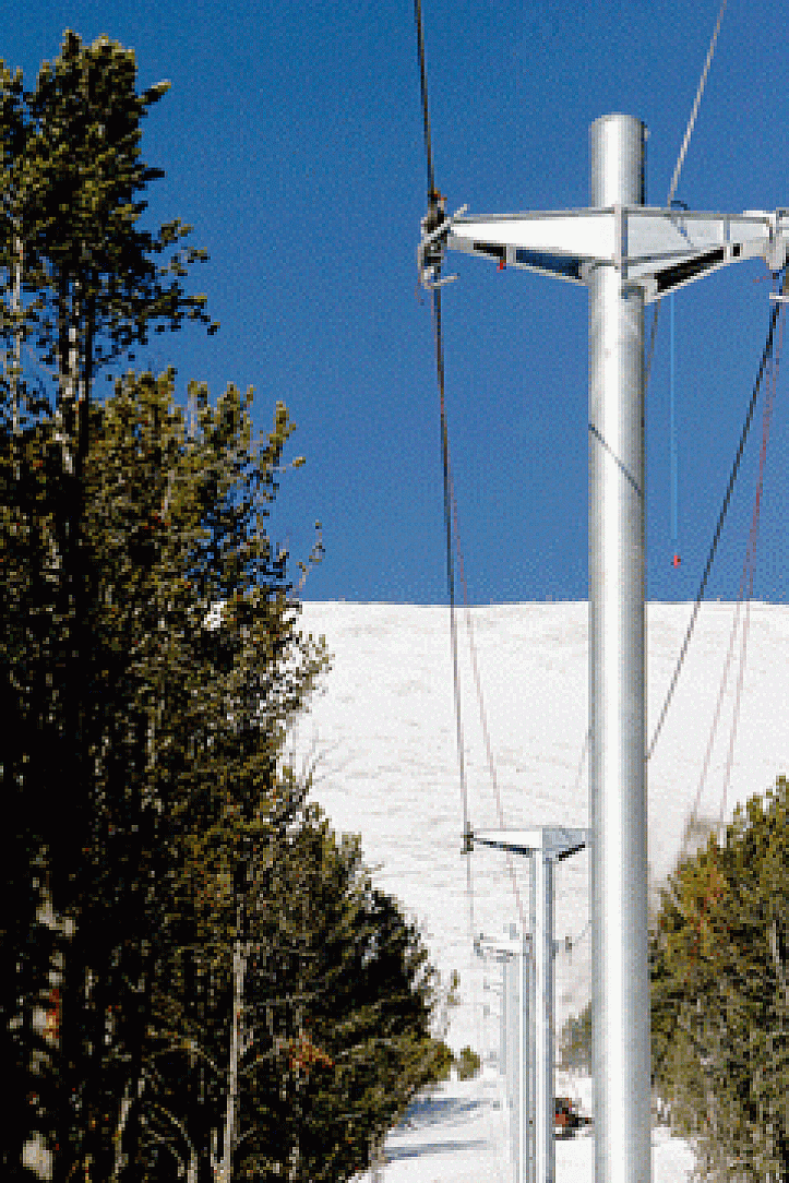 The triple-chair Dakota Lift at Big Sky Report is located on the south face of Lone Mountain. The Dakota chair, 3,100 feet long, with a vertical rise of 1,210 feet, is the first at the resort chosen to be fully hot-dip galvanized. According to resort representatives, "most lifts require a new paint job every three-to-five years."