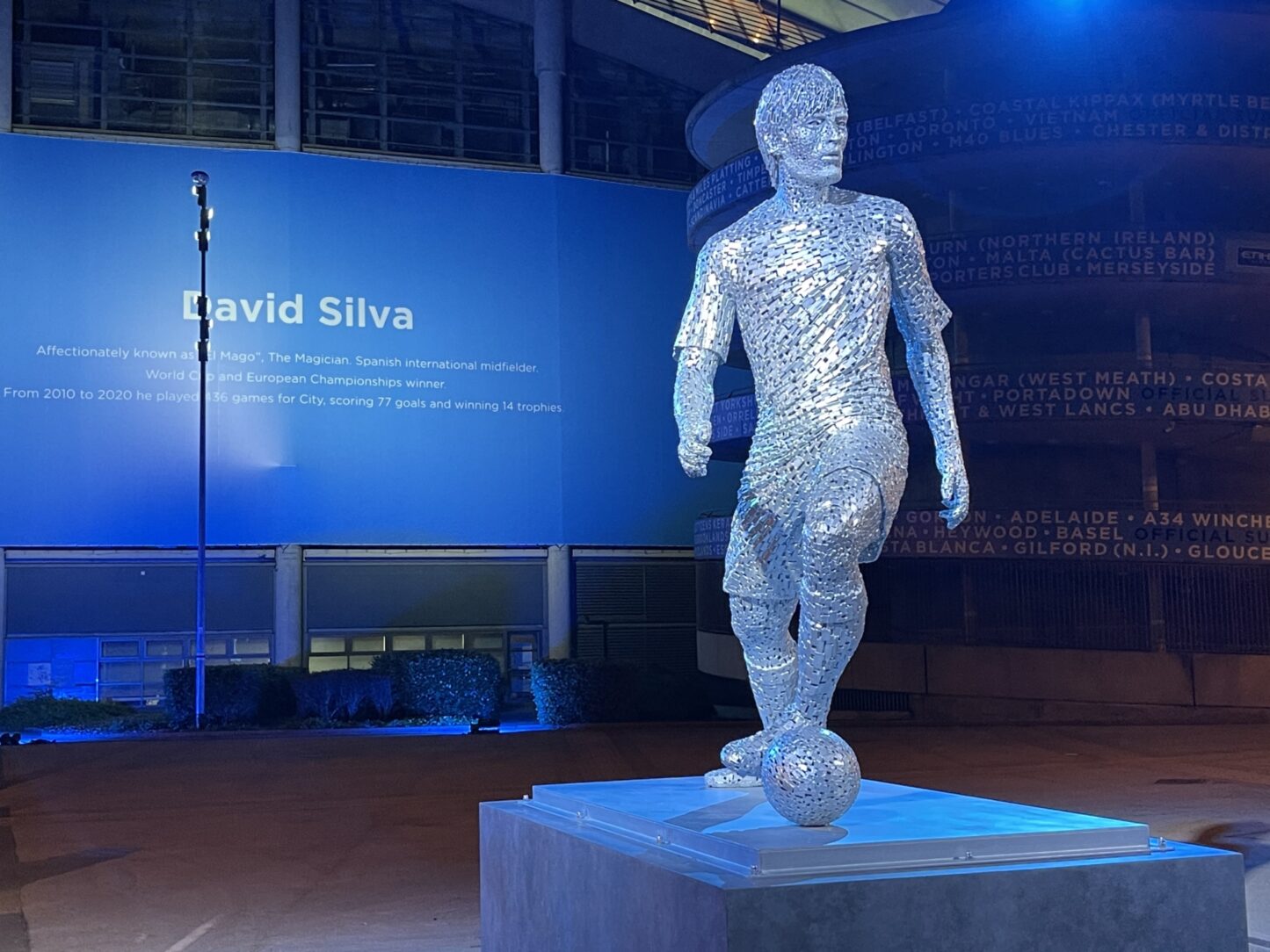 Due to the circumstances of the COVID-19 pandemic, both sculptures had to be created remotely from Scott’s studio in Philadelphia, PA. This meant Scott had to sculpt the players without ever actually meeting them or visiting the stadium. Although this made it an incredibly difficult undertaking, it didn’t affect the final results. Using thousands of welded pieces of galvanized steel, the statues will glisten in the sun and be illuminated with blue lights at night. Attendees of the unveiling were blown away by the artistic style and accurate representation of the players. Both Kompany and Silva were impressed with how Scott captured meaningful poses from impactful moments in their career.
