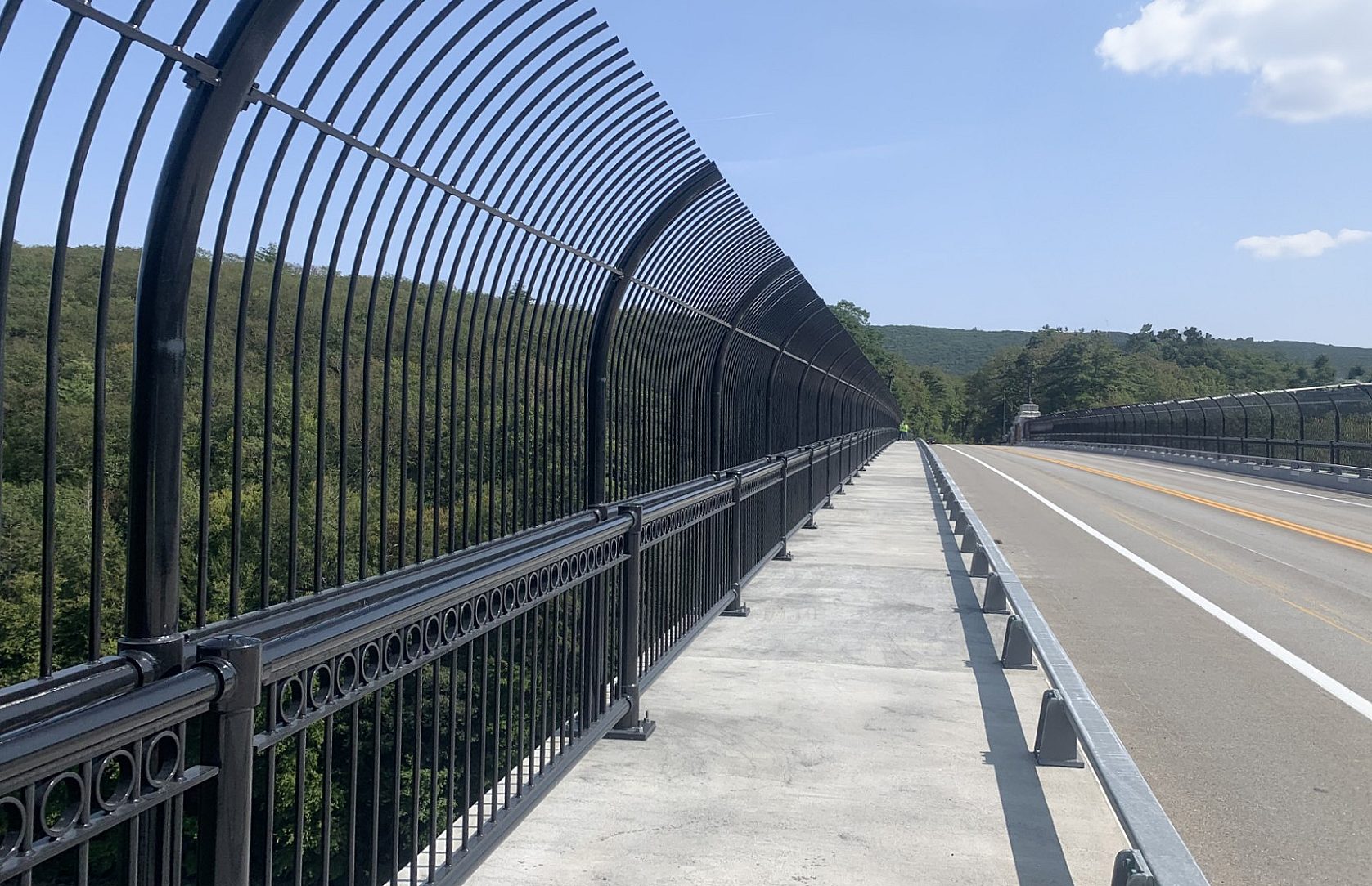 The French King Bridge is an iconic structure with a long history. Not only is it an important part of the Region’s economy as a tourist destination, but the addition of the anti-suicide barriers has given the residents of the towns of Erving and Gill a sense of comfort. To that end, the duplex system will allow the new additions to remain free from corrosion while retaining the aesthetic appeal for decades.