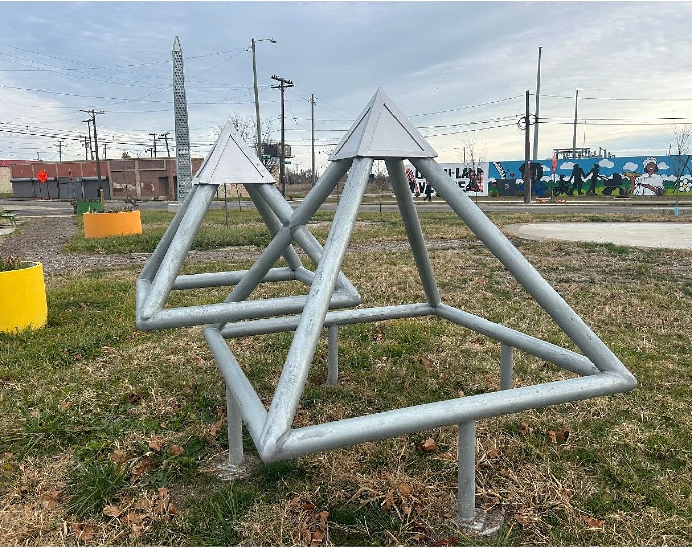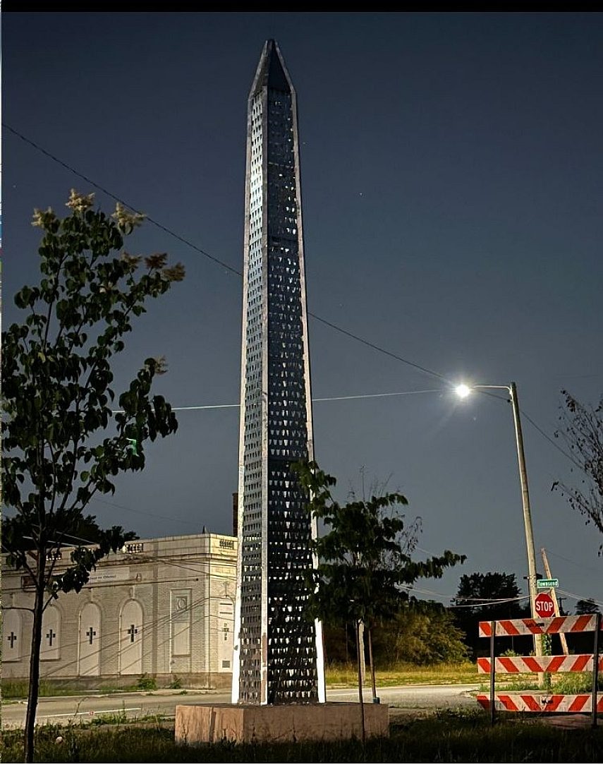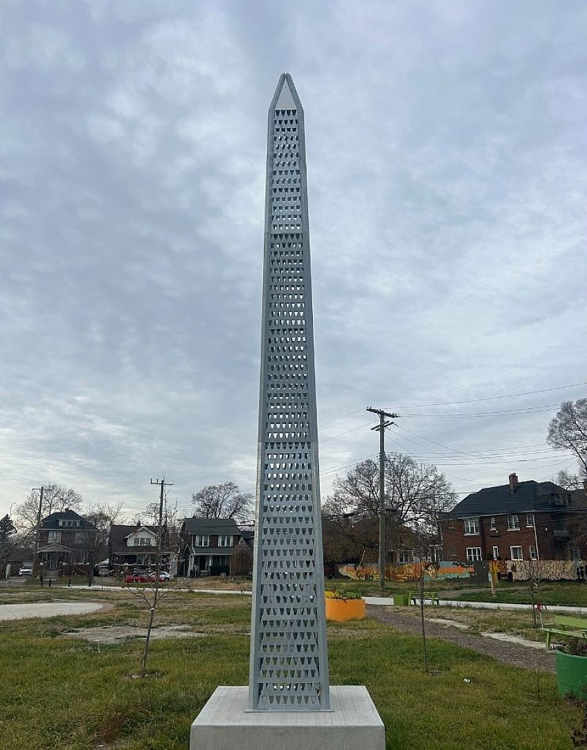 Serving as a striking focal point within a revitalized neighborhood park in Detroit, this obelisk sculpture was designed to symbolize resilience, strength, and unity. Rising from its urban surroundings, the sculpture brings a contemporary civic presence to the community while celebrating the enduring nature of steel. Its bold form and carefully detailed surfaces create a visual landmark that engages visitors throughout the day and into the evening, reinforcing the park’s role as a place of gathering and renewal.