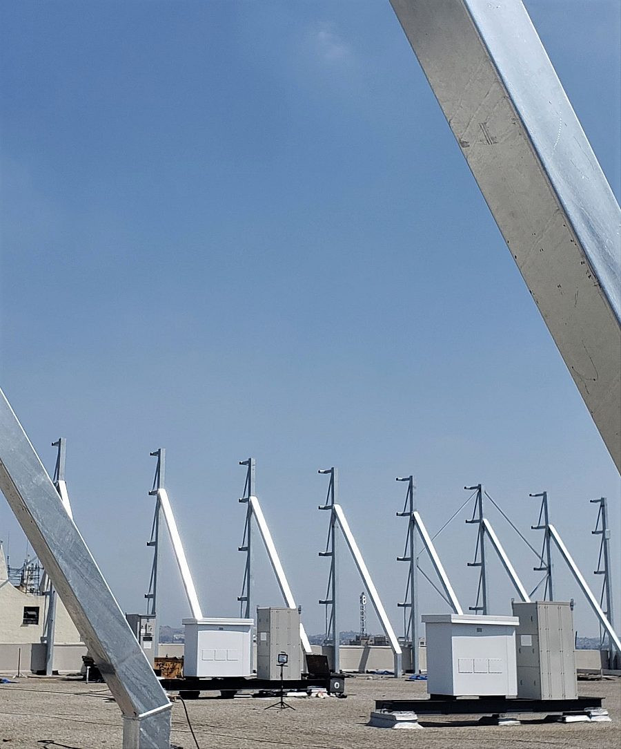 The installation of each digital panel required large, custom built hot-dip galvanized tube steel frame assemblies with cross bracing and heavy plate assemblies to permanently anchor them in place on each side of the building. The hot-dip galvanizing of these massive tube steel frames required acute angling when hanging each one on the dip rack, as well as numerous extra holes to ensure optimal venting and draining of the material. In addition, expedited processing and delivery of the material was required ensuring that critical nighttime erection schedules were met at the jobsite. After install and inspection, the high-tech digital billboard was put into operation, delivering over 173 million impressions every week to the greater population travelling around downtown Los Angeles.