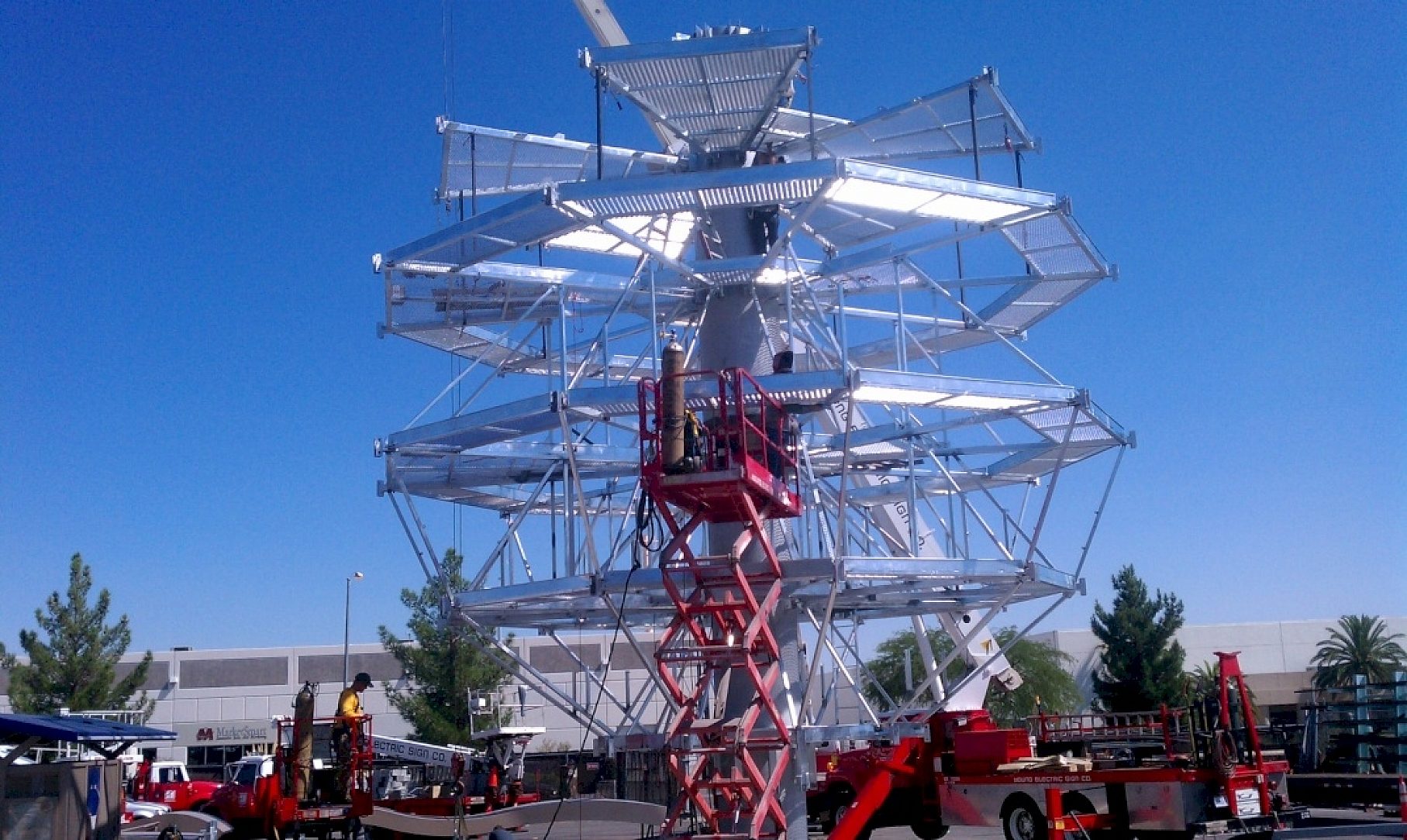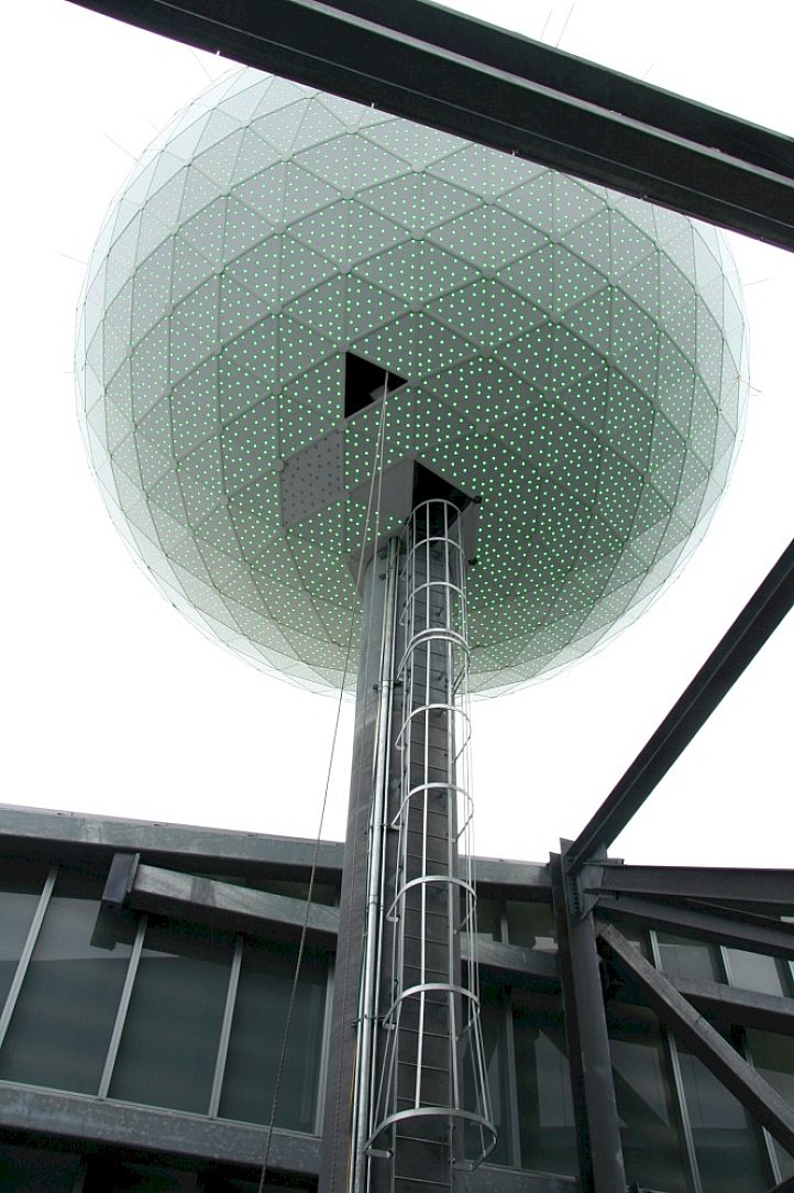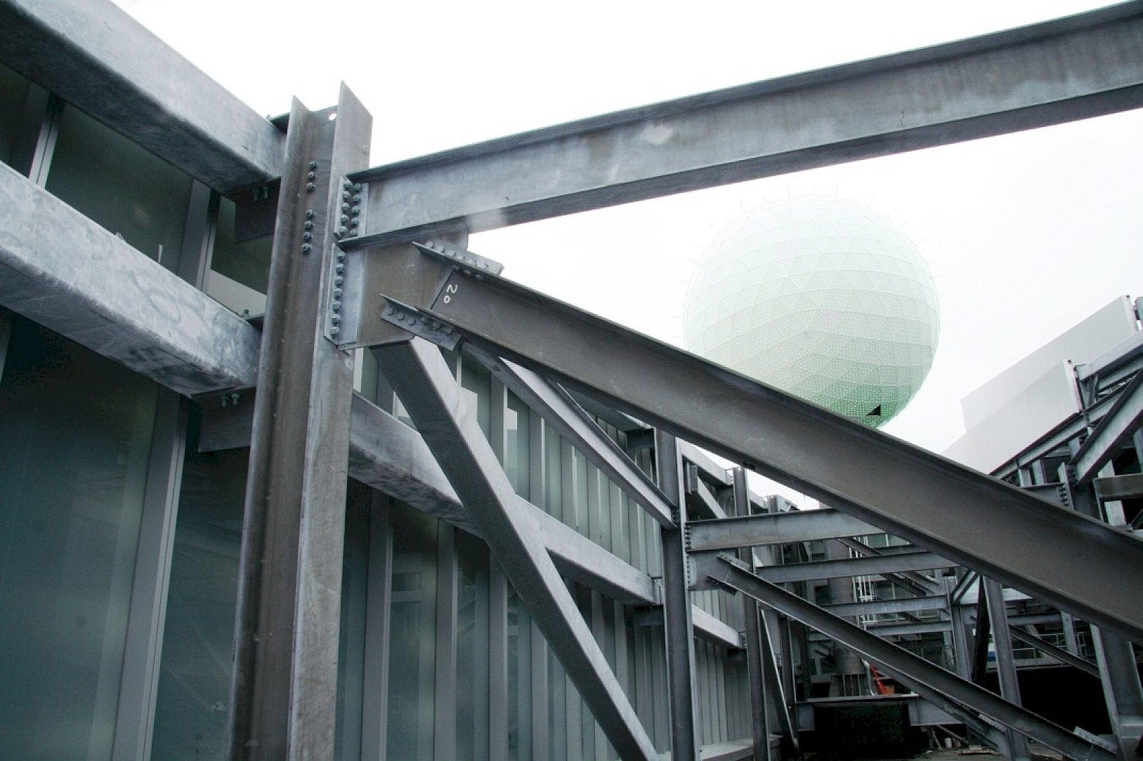 The Pearl is intended to be an eye-catcher, first and foremost. It is perceived by passers-by as a giant ball on the verge of rolling off a 710-foot building. To preserve this appearance, it was imperative any support structure or fastener blend well with the building itself. The subtlety of the HDG coating proved to be an exemplary finish to create the illusion that the sphere lies unattached at the top of the Revel Hotel.
